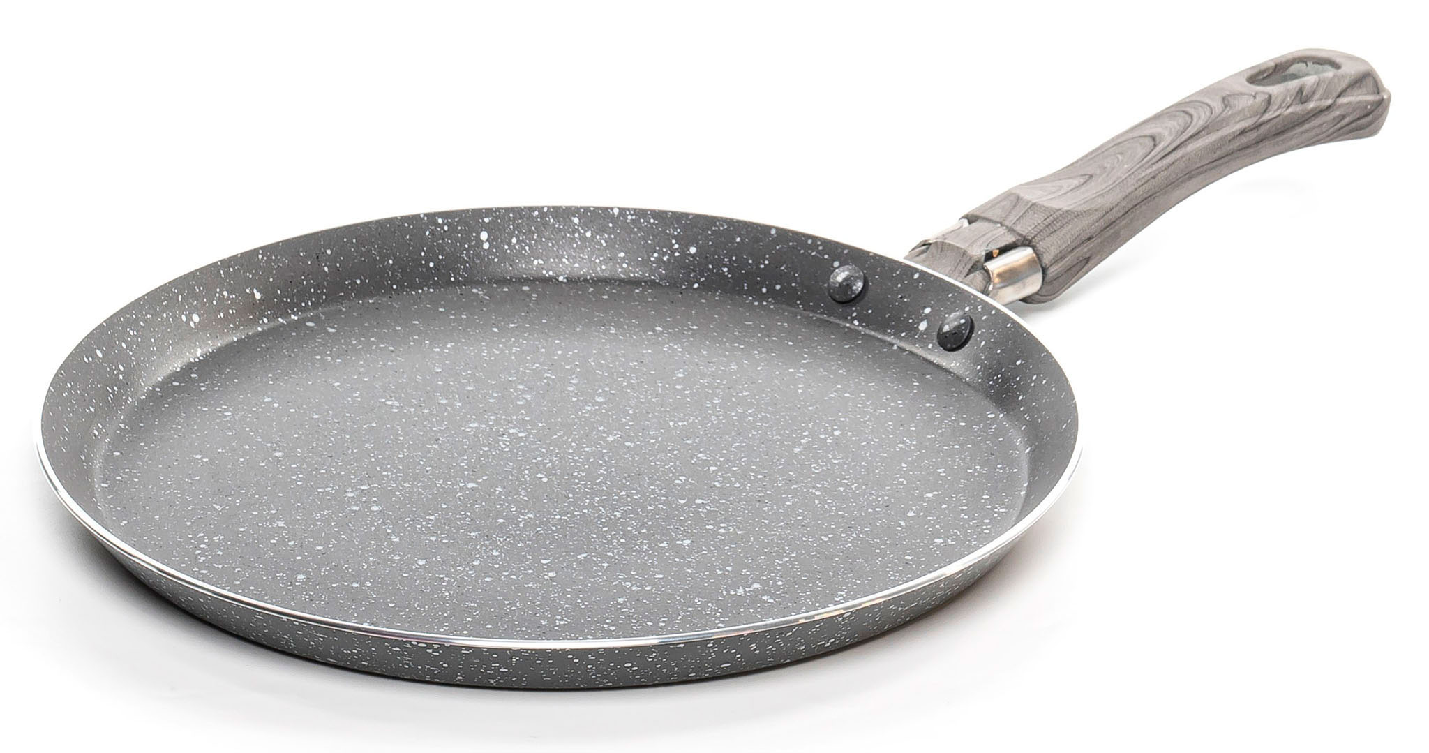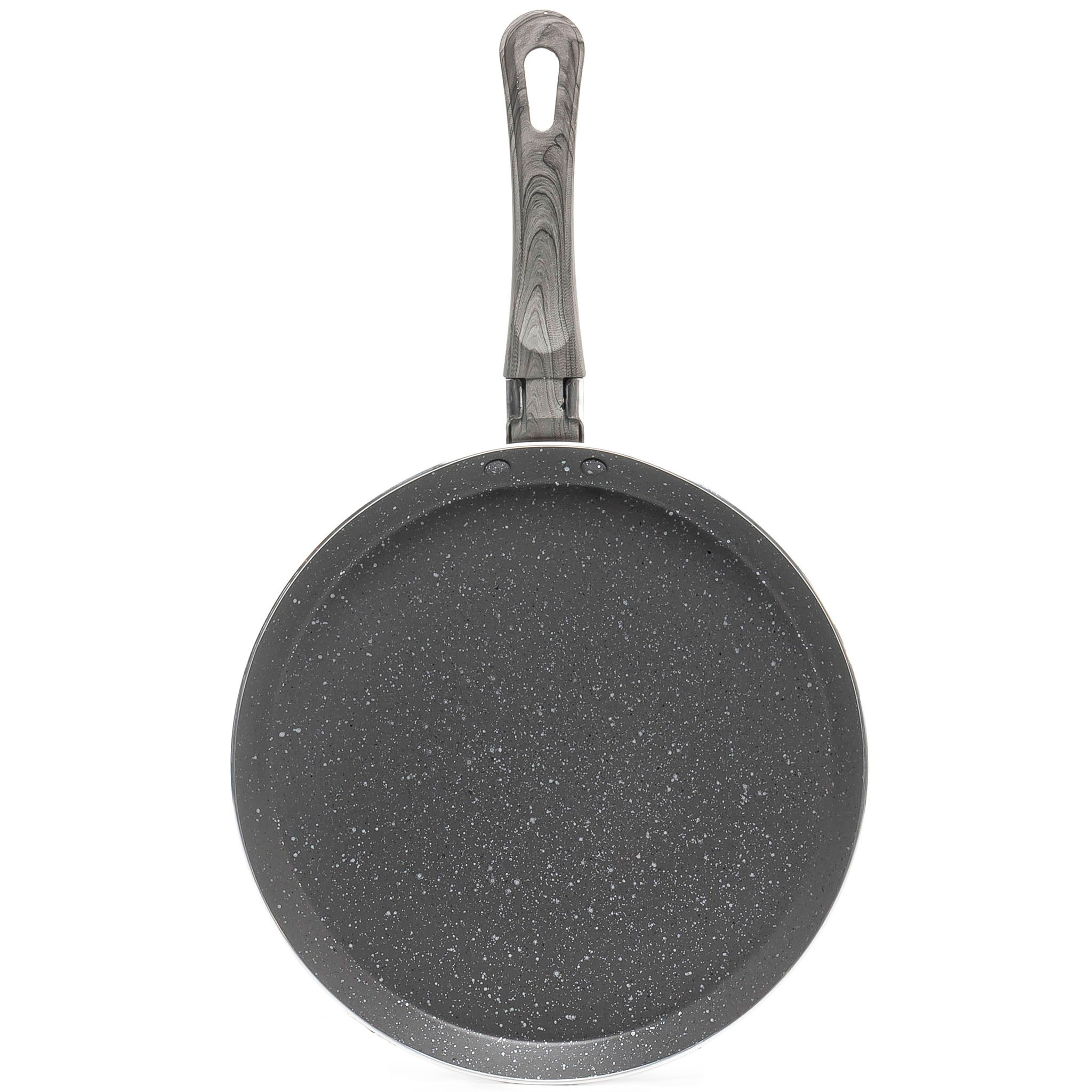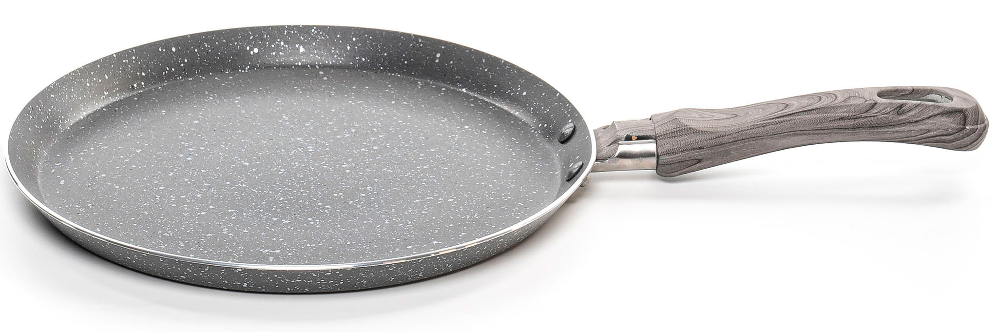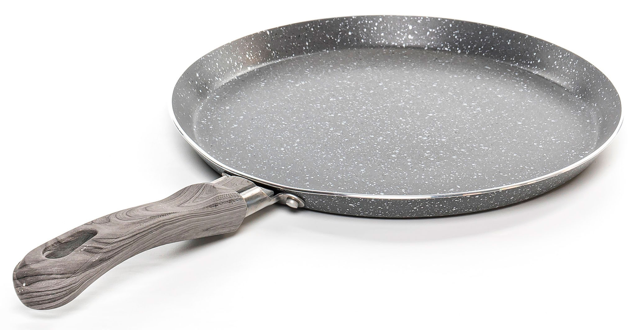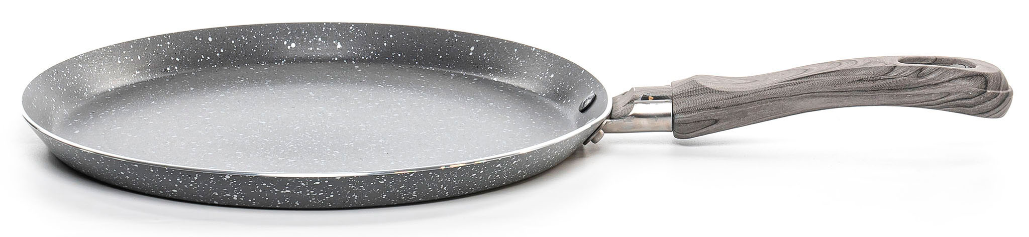 Головна особливість сковороди - її плоске дно та невелика глибина, які ідеально підходять для рівномірного та швидкого обсмажування млинців. Товщина стінок (2 мм) та дна (2 мм) забезпечує ефективне розподілення тепла, дозволяючи млинцям отримати ніжне золотисте обсмажування.