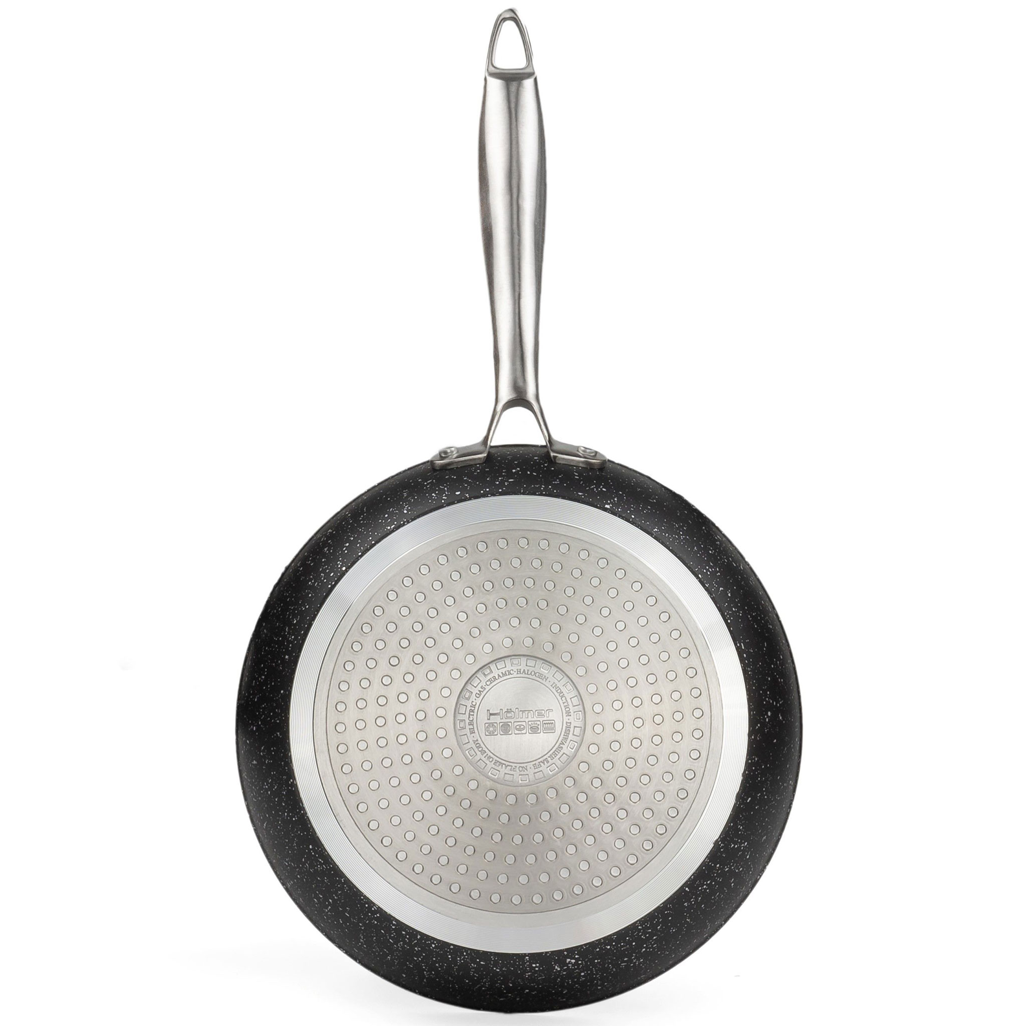 Сковороди Hölmer серії Elegance - це посуд, який має стильний дизайн, антипригарне покриття PFULTON. Тришарове мармурове покриття має чудові експлуатаційні характеристики. Використання спеціального крапельно-дисперсного нанесення фінішних шарів створює унікальне по структурі тришарове покриття з ефектом мармуру.