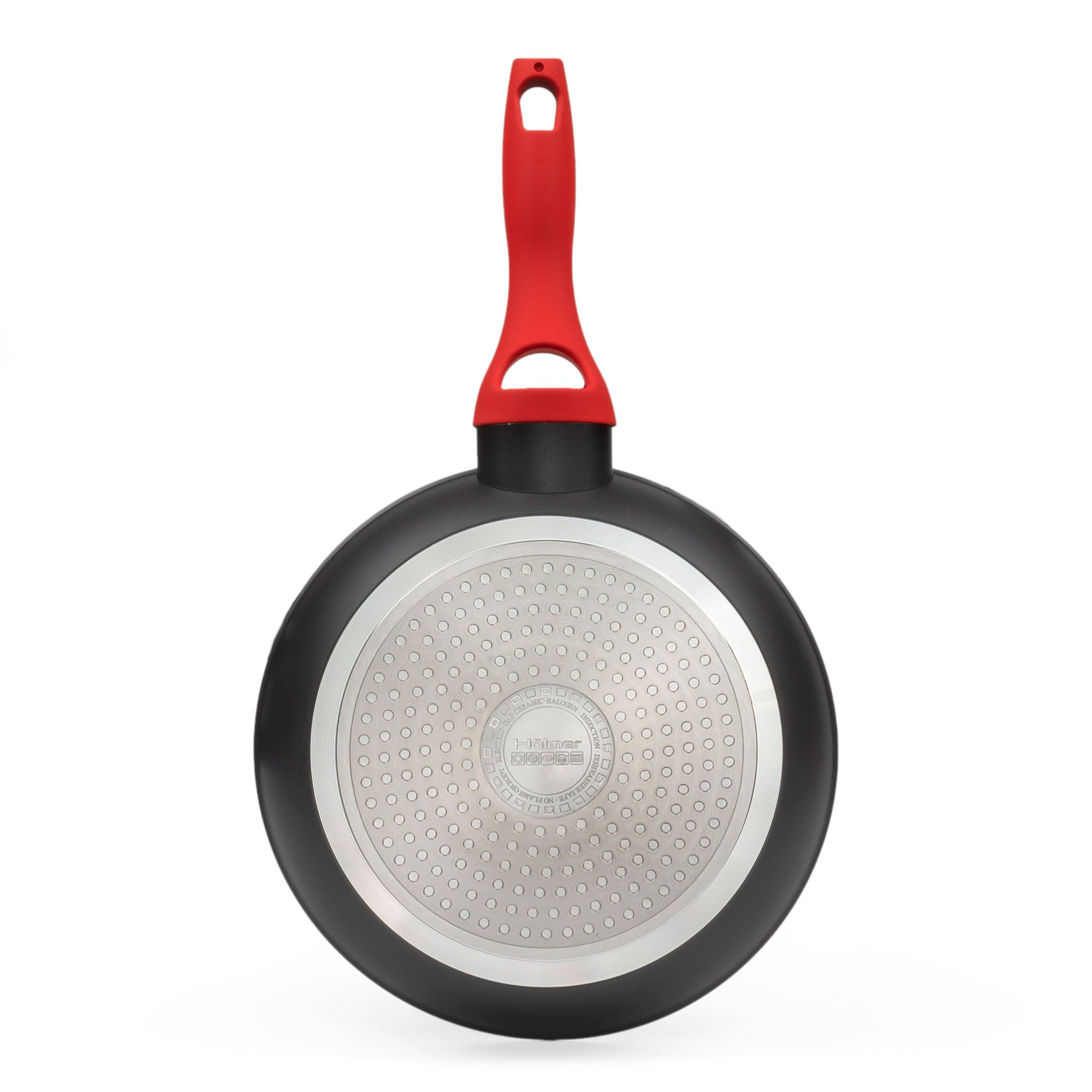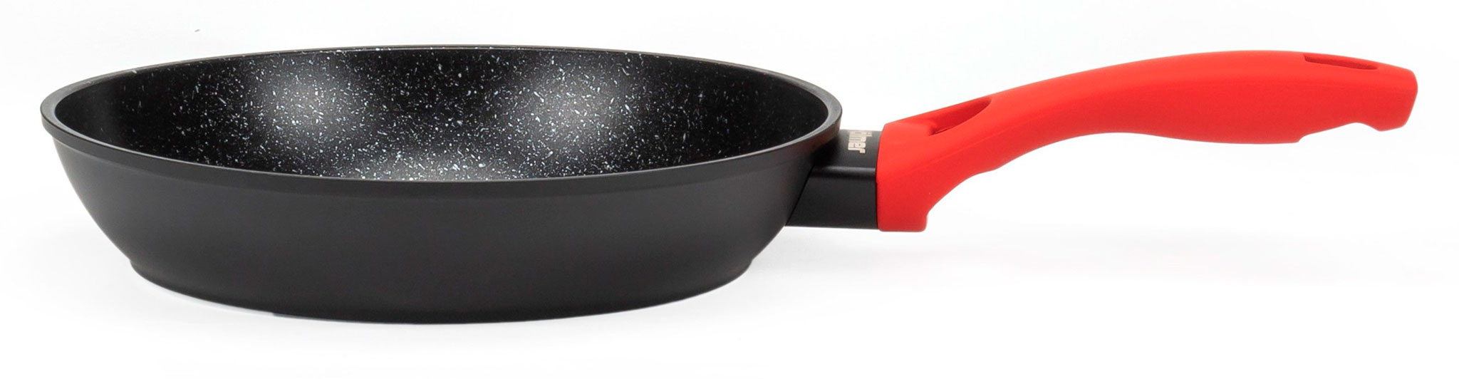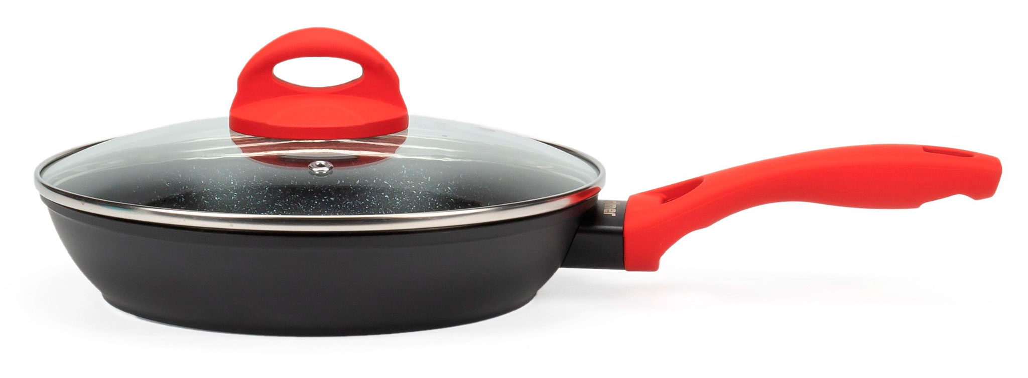 Зручність використання даної сковороди досягається завдяки ергономічній ручці з бакеліту. Додаткове покриття soft-touch, крім тактильного задоволення, захищає руки від опіків і дозволяє не вислизає навіть з вологих долонь. А червоний колір ручки подарує вашій кухні яскравий стильний акцент.