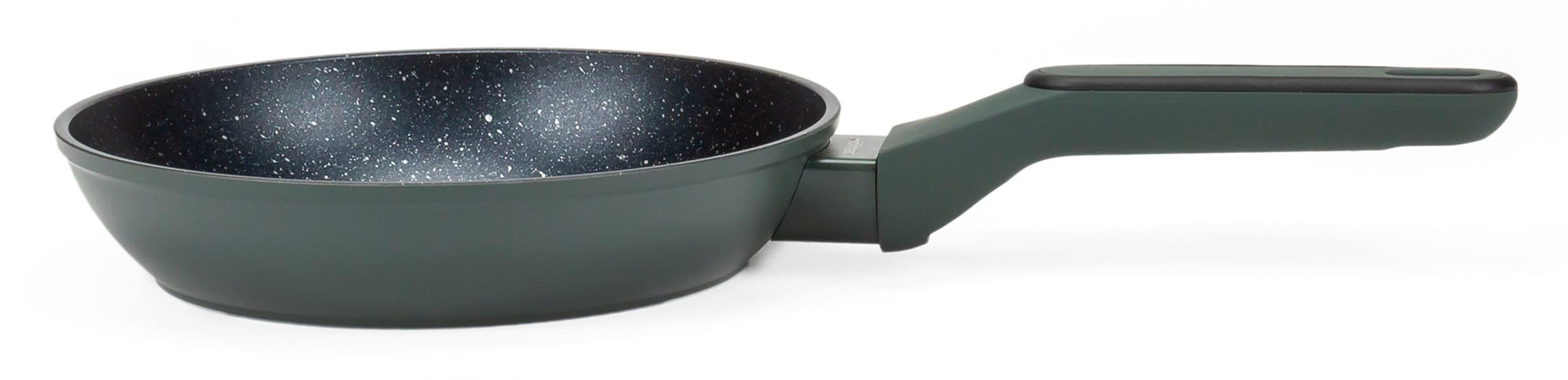 Зручність використання даної сковороди досягається завдяки ергономічній ручці з бакеліту. Додаткове покриття soft-touch, крім тактильного задоволення, захищає руки від опіків і дозволяє не вислизає навіть з вологих долонь. Зовнішнє покриття та ручка мають приемний темно зелений колір, завдяки чому сковороди серії Modern будуть гарно виглядати в кухні.