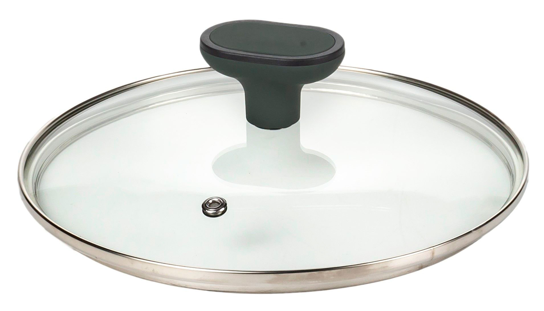 Кришка з термостійкого скла, з ободом із нержавіючої сталі й отвором для виходу пари. Завдяки тому, що кришка прозора легко спостерігати за приготуванням їжі, не знімаючи її зі сковороди.