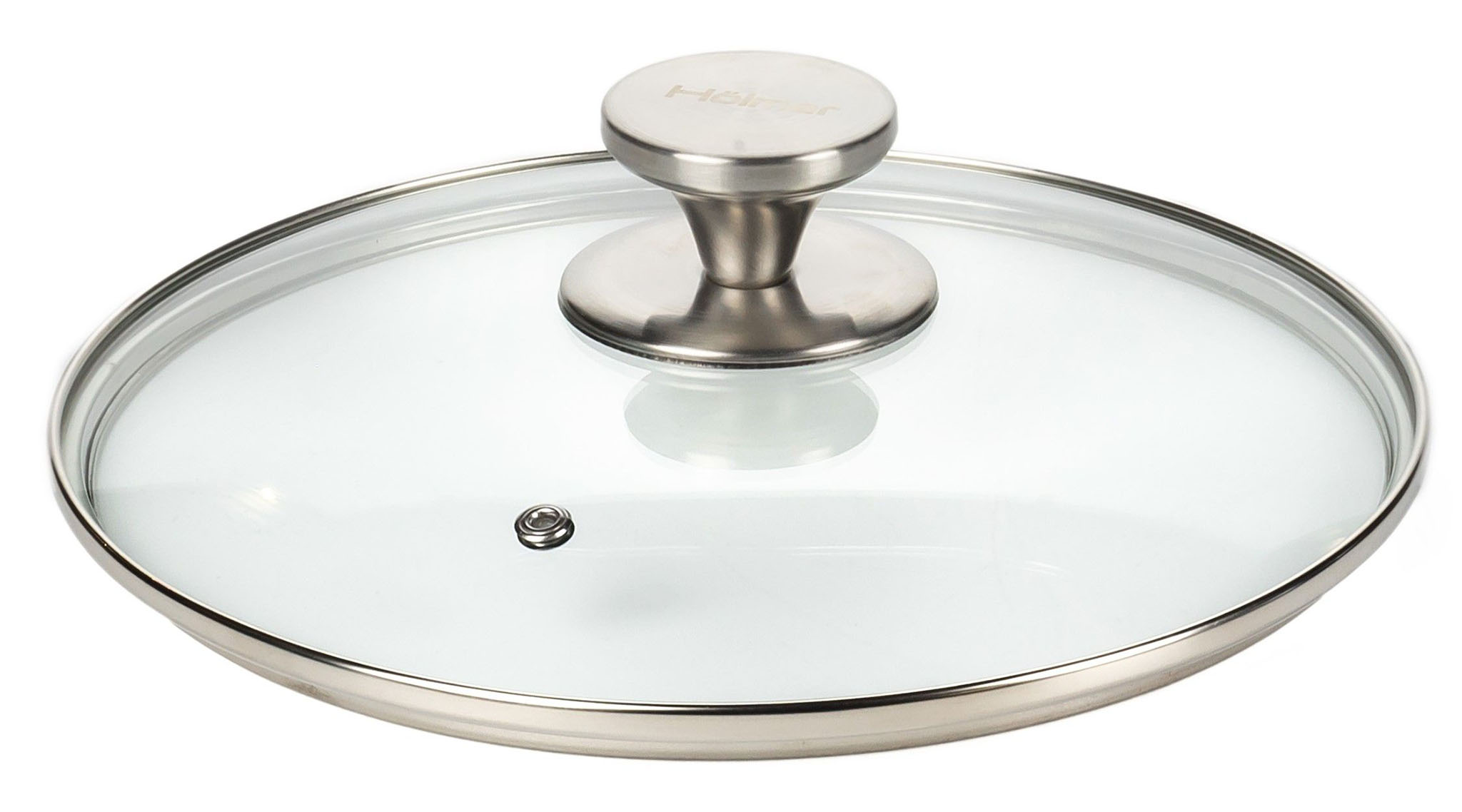 Кришка з термостійкого скла, з ободом із нержавіючої сталі й отвором для виходу пари. Завдяки тому, що кришка прозора легко спостерігати за приготуванням їжі, не знімаючи її зі сковороди.