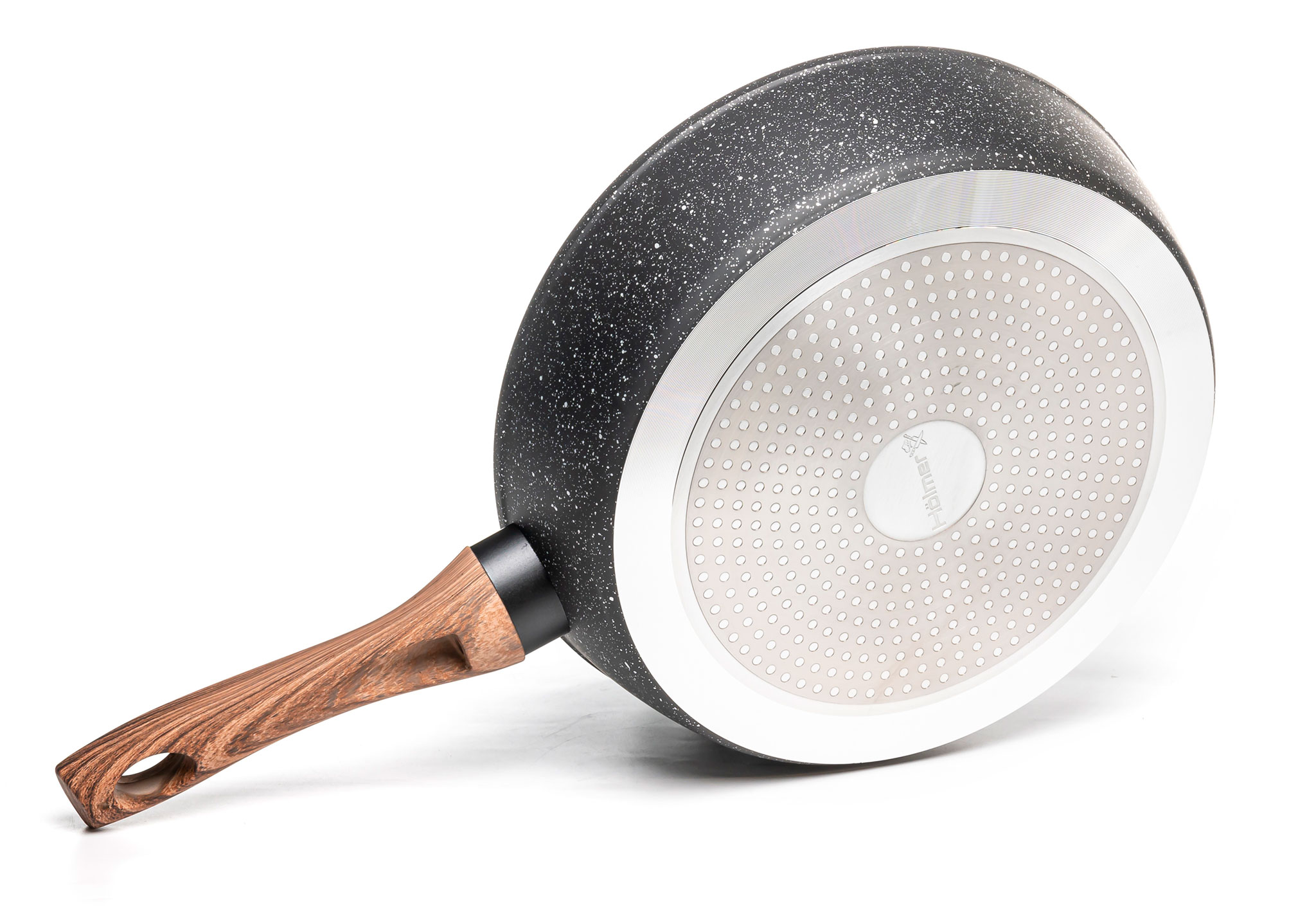 Усередині сотейника розташоване мармурове 3-х шарове покриття, яке запобігає пригоранню та забезпечує рівномірний розподіл тепла. Це допомагає зберегти смакові якості продуктів та полегшує процес чищення після готування.