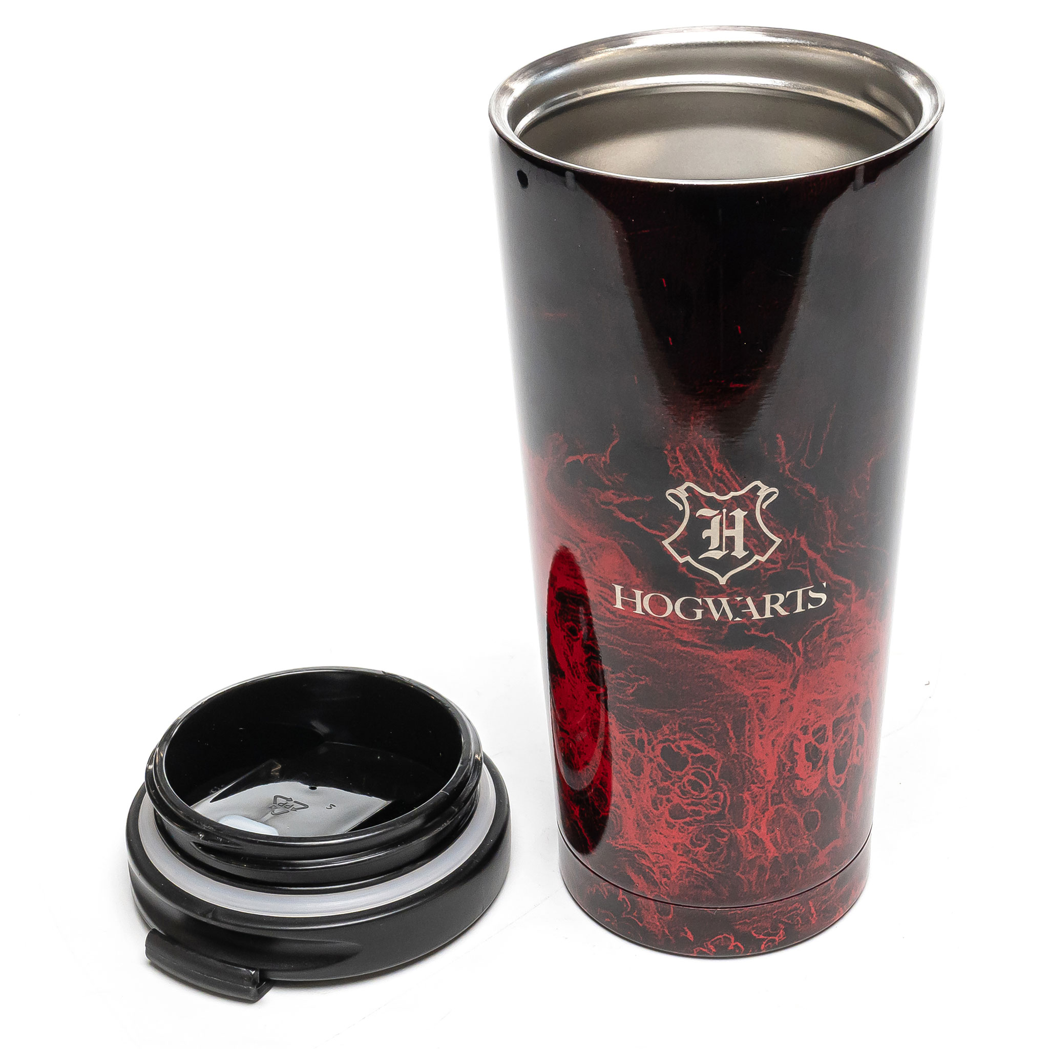 Кружка для кави з нержавіючої сталі за мотивами популярних фільмів та книжок про Гаррі Поттера. Зображений логотип факультету Гріффіндор школи магії Хогвартс.