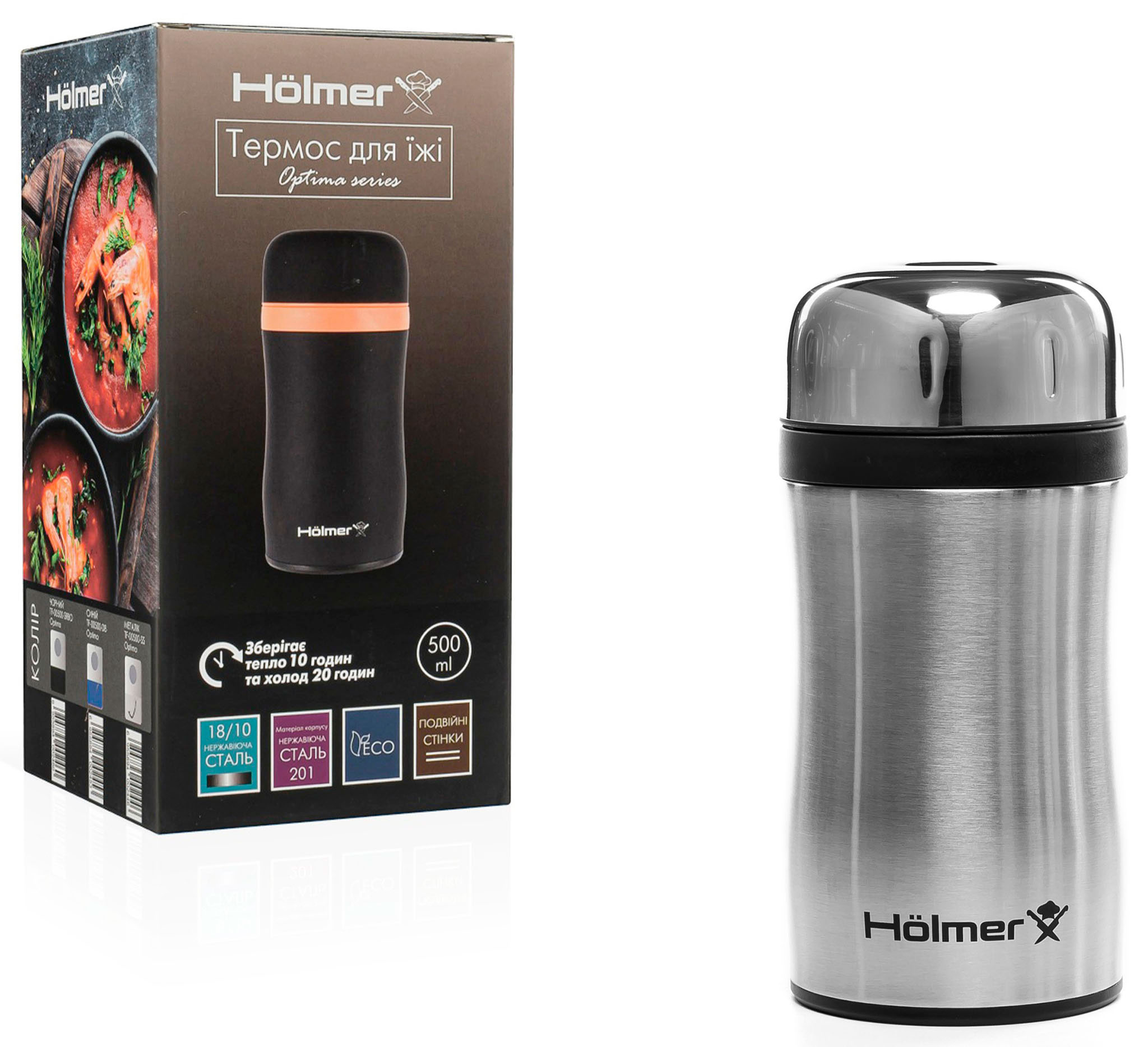 Термос для їжі Hölmer Optima - ваш надійний компаньйон для зберігання гарячої або прохолодної їжі в дорозі, на роботі, чи в подорожах. З його допомогою ви завжди зможете насолоджуватися смачними стравами, незалежно від того, де ви знаходитесь.
