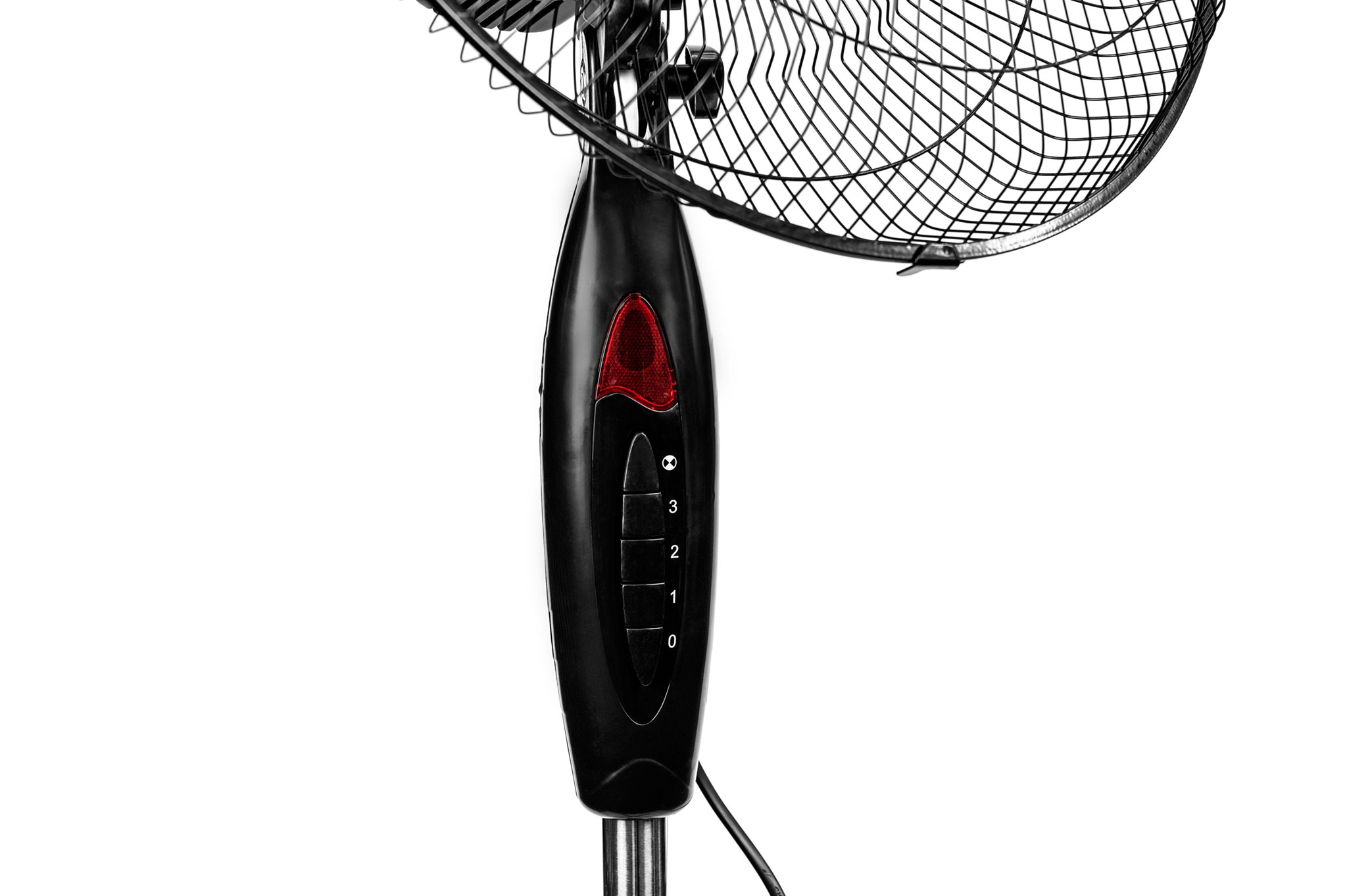 На лицьовій стороні вентилятора HFS-1217B розташована кнопкова панель управління зі світловим індикатором. Інтерфейс управління зручний та зрозумілий. 3 швидкості обертання дозволяють вибрати оптимальну і комфортну для Вас силу обдування. В налаштуваннях включена також функція «Автоповорот».
