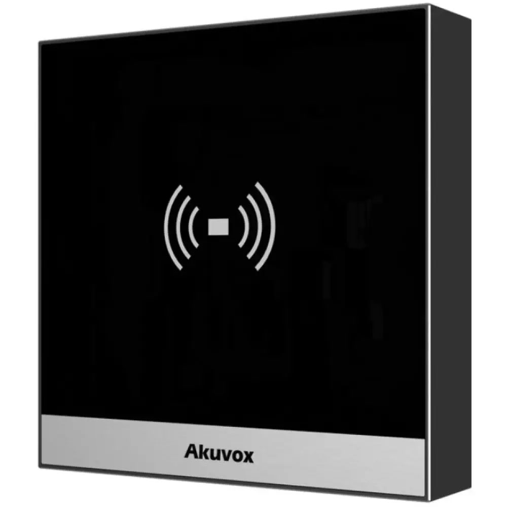 Зчитувач Akuvox A01 - мережевий пристрій контролю доступу, призначений для ідентифікації користувачів за RF-картками та інтеграції в IP-системи безпеки. Передня панель із загартованого скла та алюмінієвий корпус забезпечують механічну міцність і сучасний зовнішній вигляд.