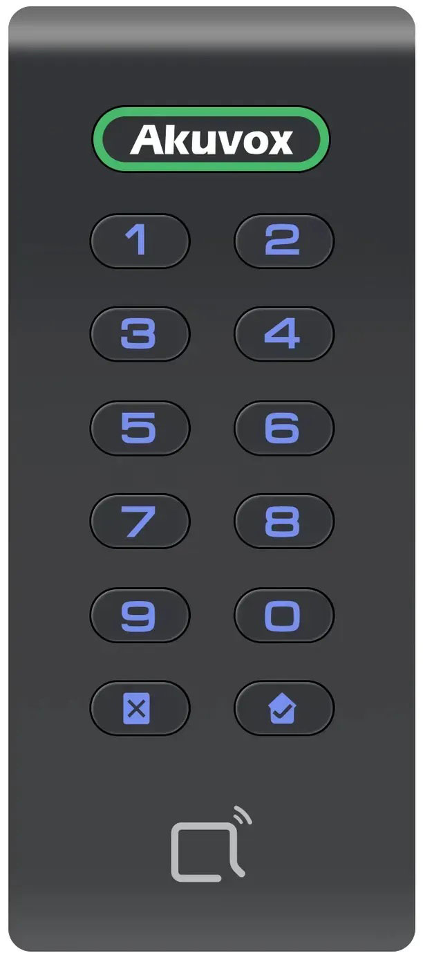 Пластиковий RFID-зчитувач Akuvox ACR-CRP11 з пінпадом розроблений для безпечного контролю доступу та має зручний інтерфейс із фізичними кнопками.