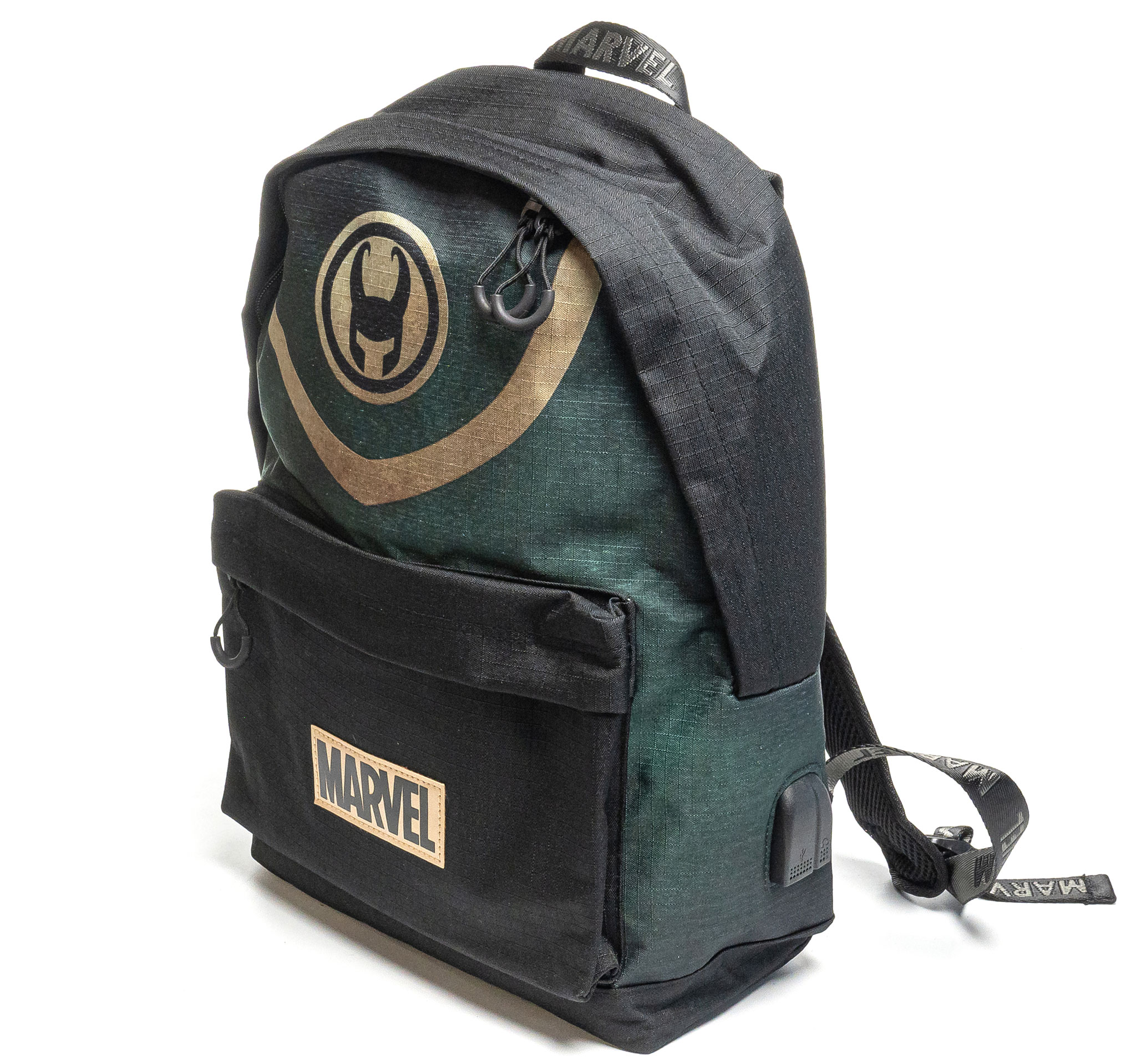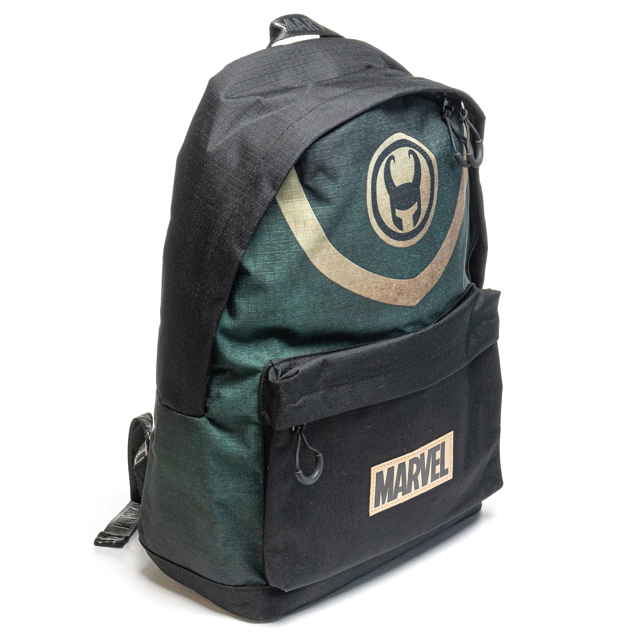 Рюкзак для повсякденного життя за мотивами популярних коміксів та фільмів про супергероїв всесвіту Marvel. Зображено символіку одного з головних антигероїв франшизи - Локі.