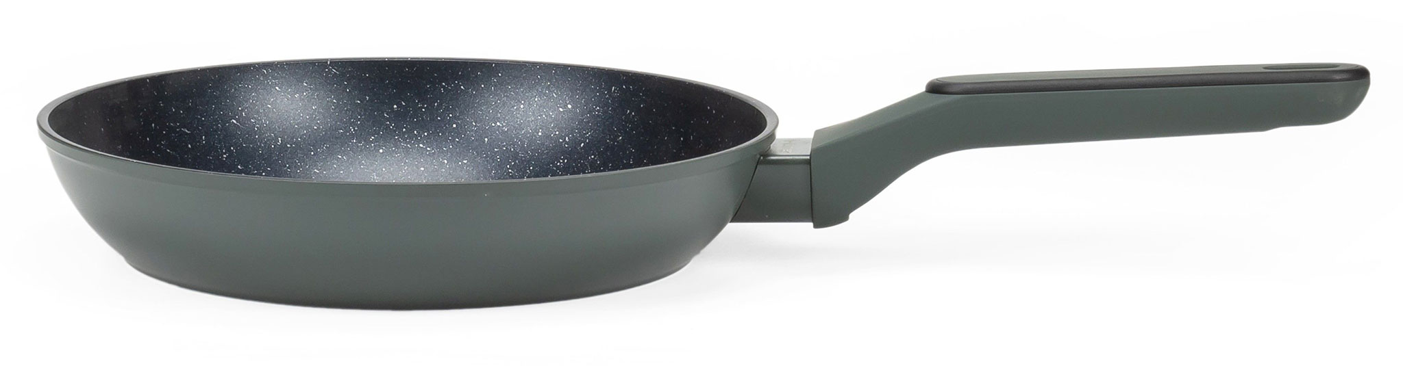 Зручність використання даної сковороди досягається завдяки ергономічній ручці з бакеліту. Додаткове покриття soft-touch, крім тактильного задоволення, захищає руки від опіків і дозволяє не вислизає навіть з вологих долонь. Зовнішнє покриття та ручка мають приемний темно зелений колір, завдяки чому сковороди серії Modern будуть гарно виглядати в кухні.