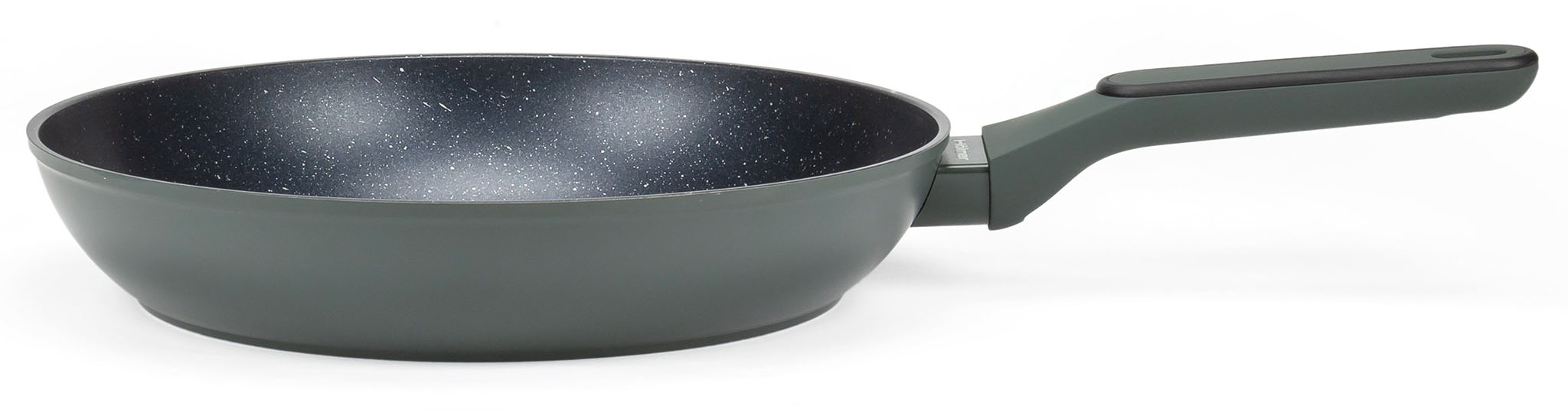 Зручність використання даної сковороди досягається завдяки ергономічній ручці з бакеліту. Додаткове покриття soft-touch, крім тактильного задоволення, захищає руки від опіків і дозволяє не вислизає навіть з вологих долонь. Зовнішнє покриття та ручка мають приемний темно зелений колір, завдяки чому сковороди серії Modern будуть гарно виглядати в кухні.
