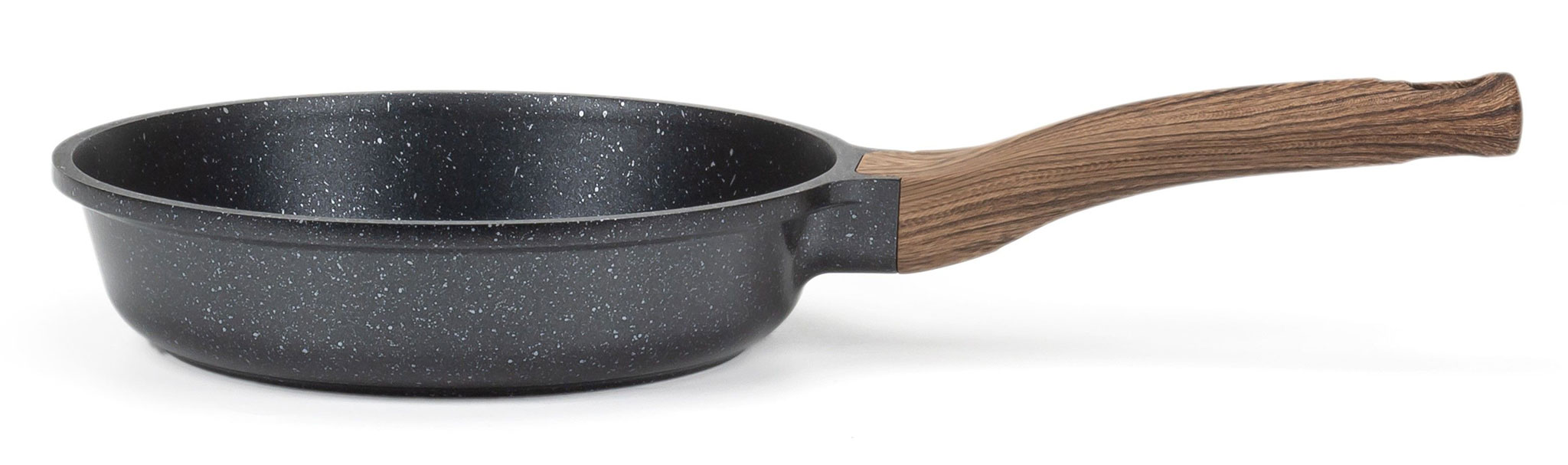 Сковороди серії Nature виготовлені із літого алюмінію, товщиною 3,5 мм, ця сковорідка нагрівається швидко та рівномірно. Що значно прискорює процес приготування, а також перешкоджає пригоранню і нерівномірному просмажуванню продуктів.