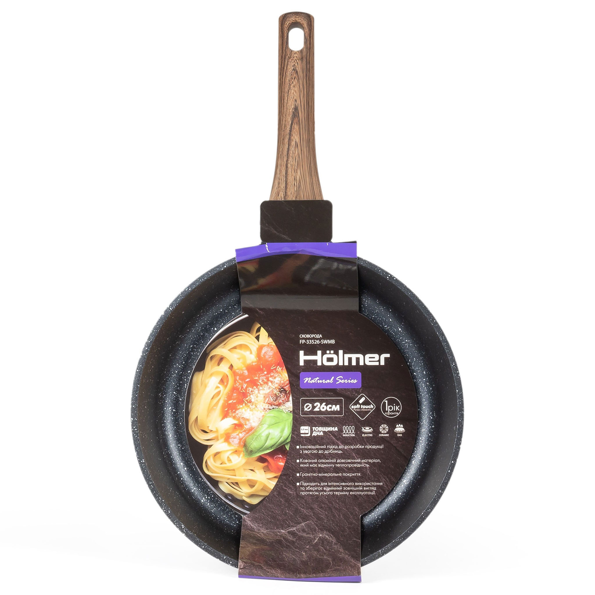 Сковороди Hölmer серії Nature - це посуд, який має стильний дизайн, антипригарне покриття PFULTON. Тришарове мармурове покриття має чудові експлуатаційні характеристики. Використання спеціального крапельно-дисперсного нанесення фінішних шарів створює унікальне по структурі тришарове покриття з ефектом мармуру.