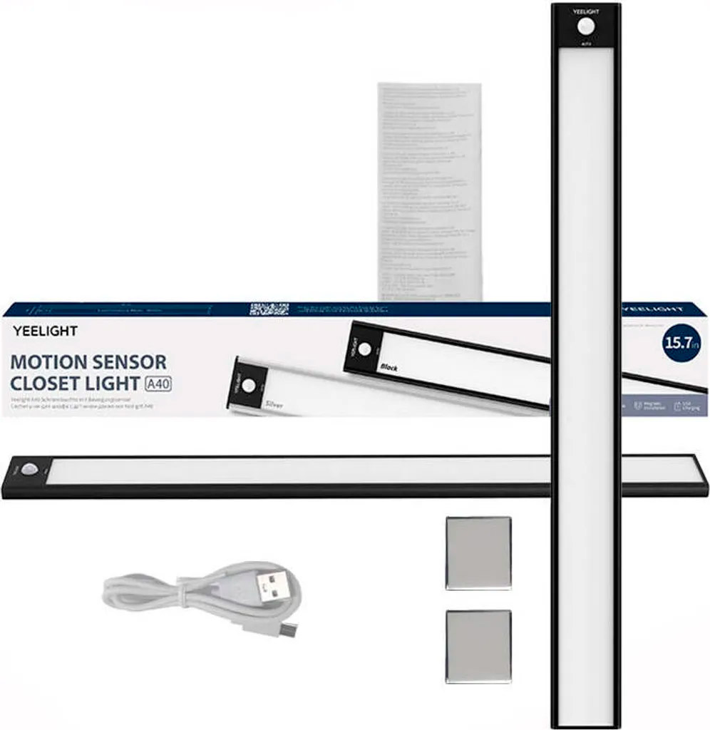 Світильник для шафи Yeelight A40 (сірий) 4000k — це ультратонкий бездротовий LED-світильник з датчиком руху, призначений для автоматичного освітлення темних зон, таких як шафи, полиці, коридори або кухонні стільниці.