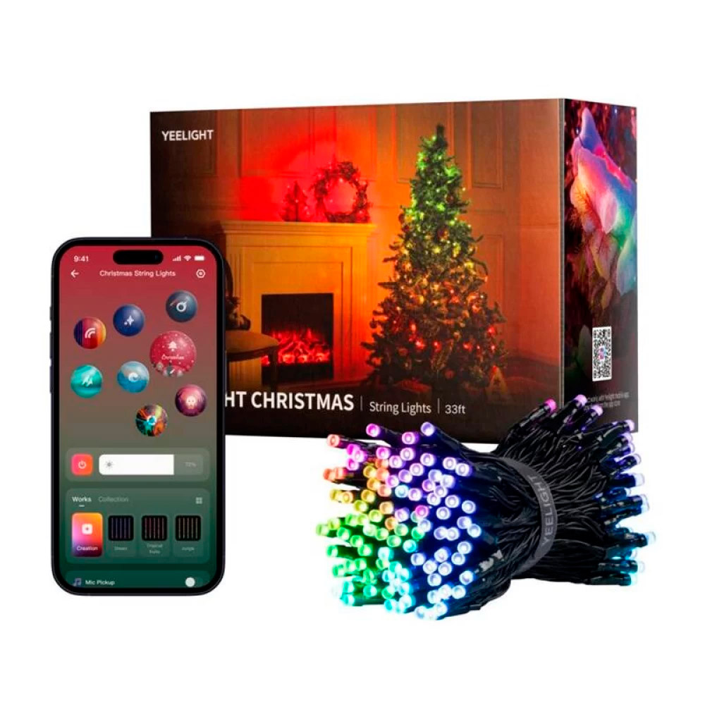Гірлянда легко керується через мобільний застосунок Yeelight або інший сумісний додаток за допомогою Bluetooth (BLE). Ви можете налаштовувати кольори, режими, яскравість, швидкість ефектів або увімкнути реакцію на музику. Працює від безпечного 12V живлення, що дозволяє використовувати її в інтер’єрі та для святкових інсталяцій.