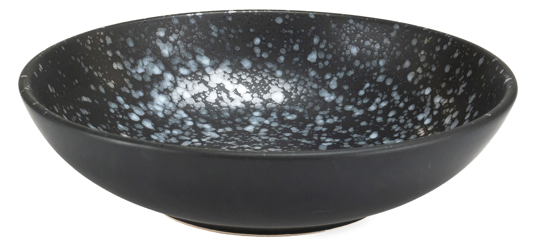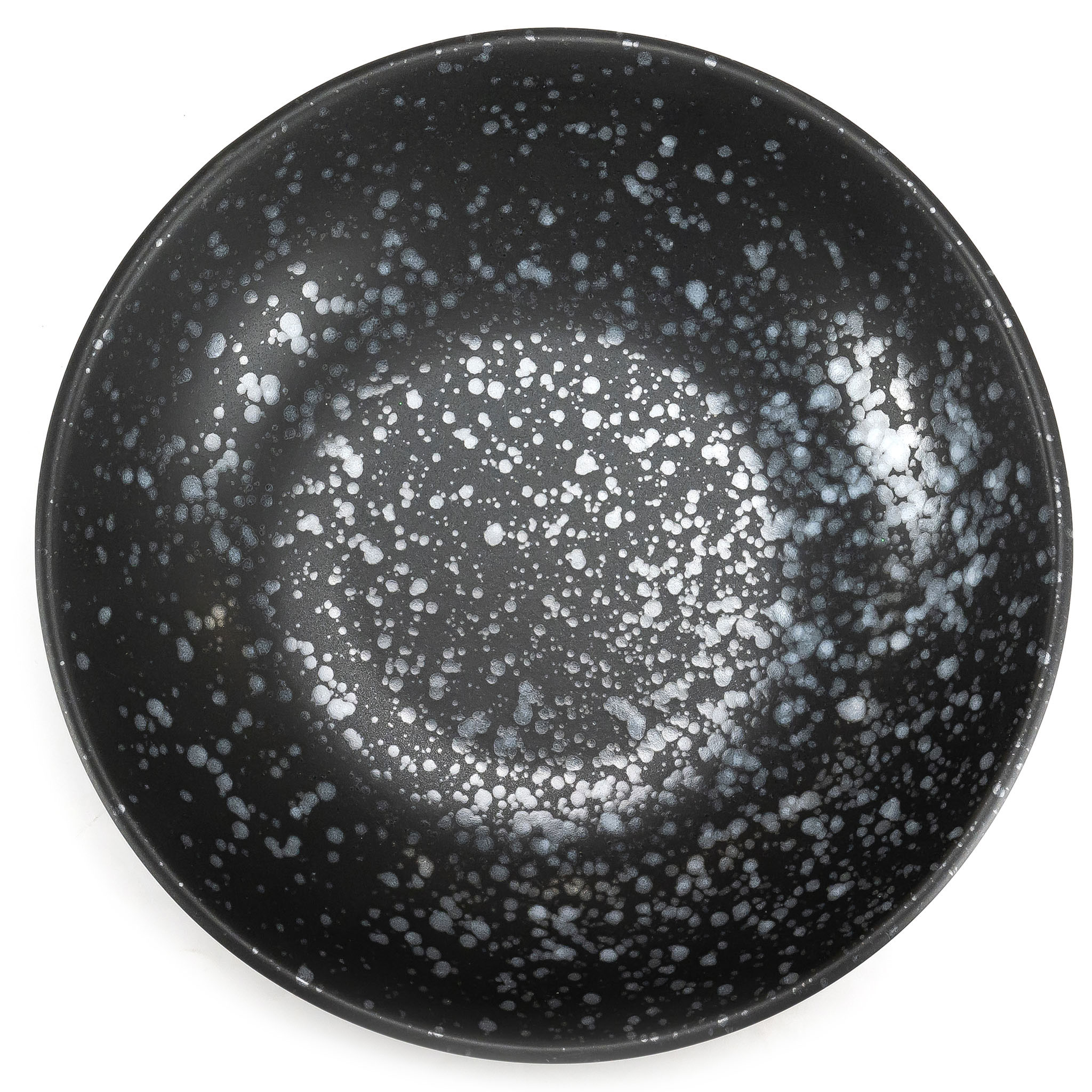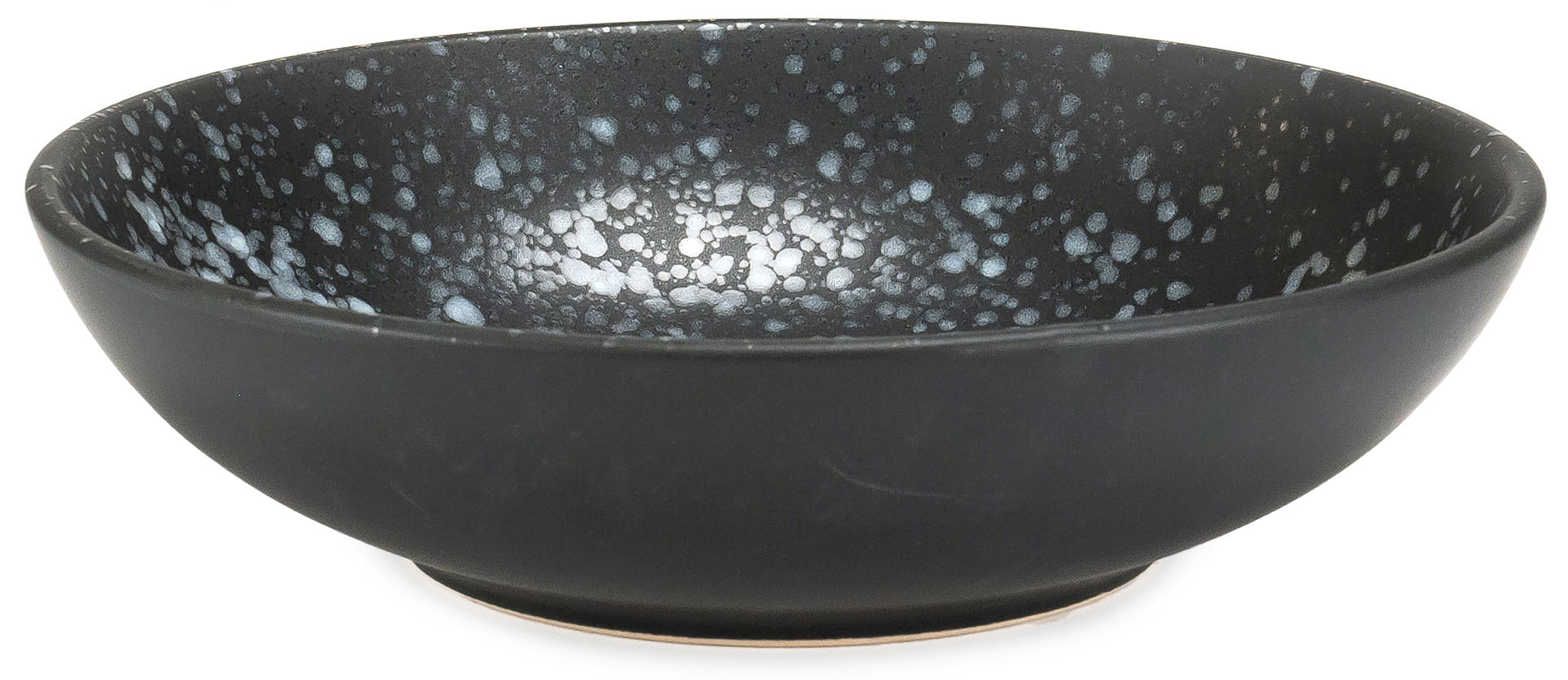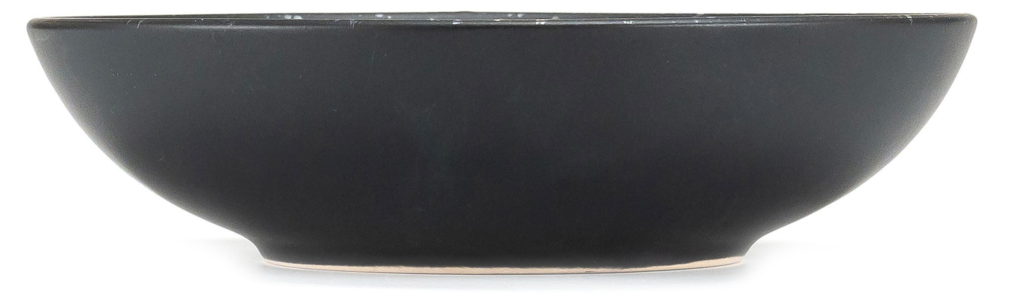 Чорний крапчастий візерунок, натхненний природними текстурами вулканічних ландшафтів, додає тарілці унікального характеру. Виготовлена з кам'яної кераміки, вона відзначається довговічністю, а також стійкістю до впливу високих температур і частого миття.