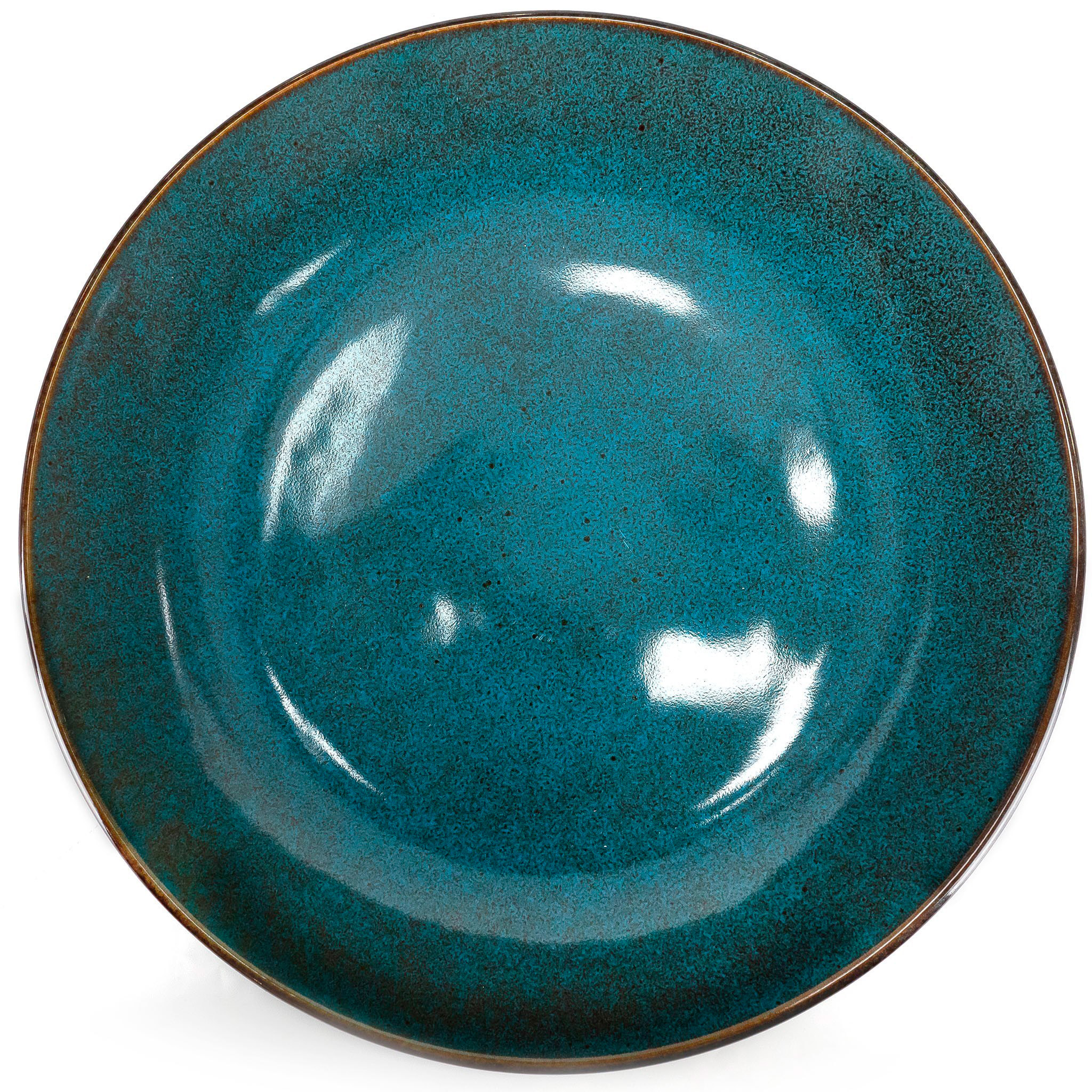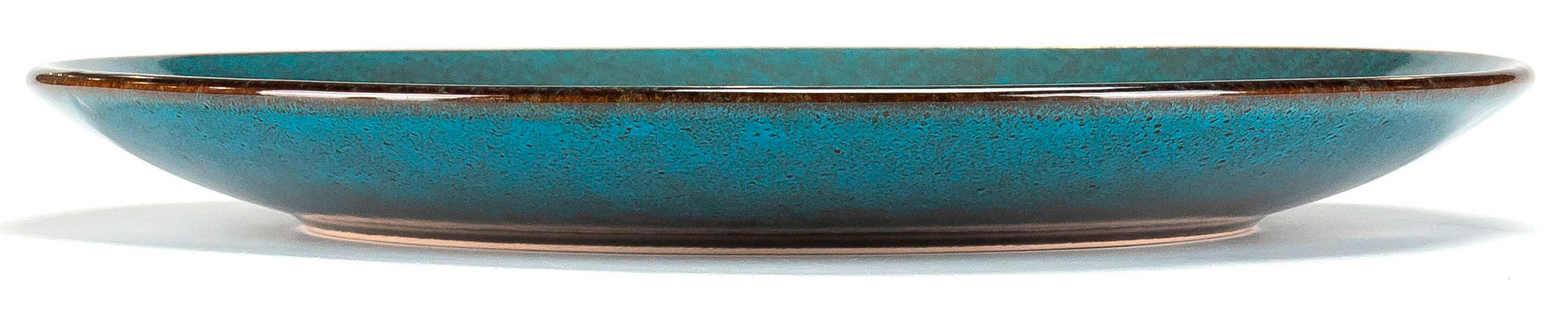 Обідня тарілка серії Lagoon від Hölmer - це справжнє мистецтво на вашому столі. Її розкішний бірюзовий колір з природними відтінками та теплий коричневий обідок нагадують про спокій та глибину лагуни. Діаметр 27 см дозволяє використовувати її для подачі основних страв, підкреслюючи їх апетитність і красу.