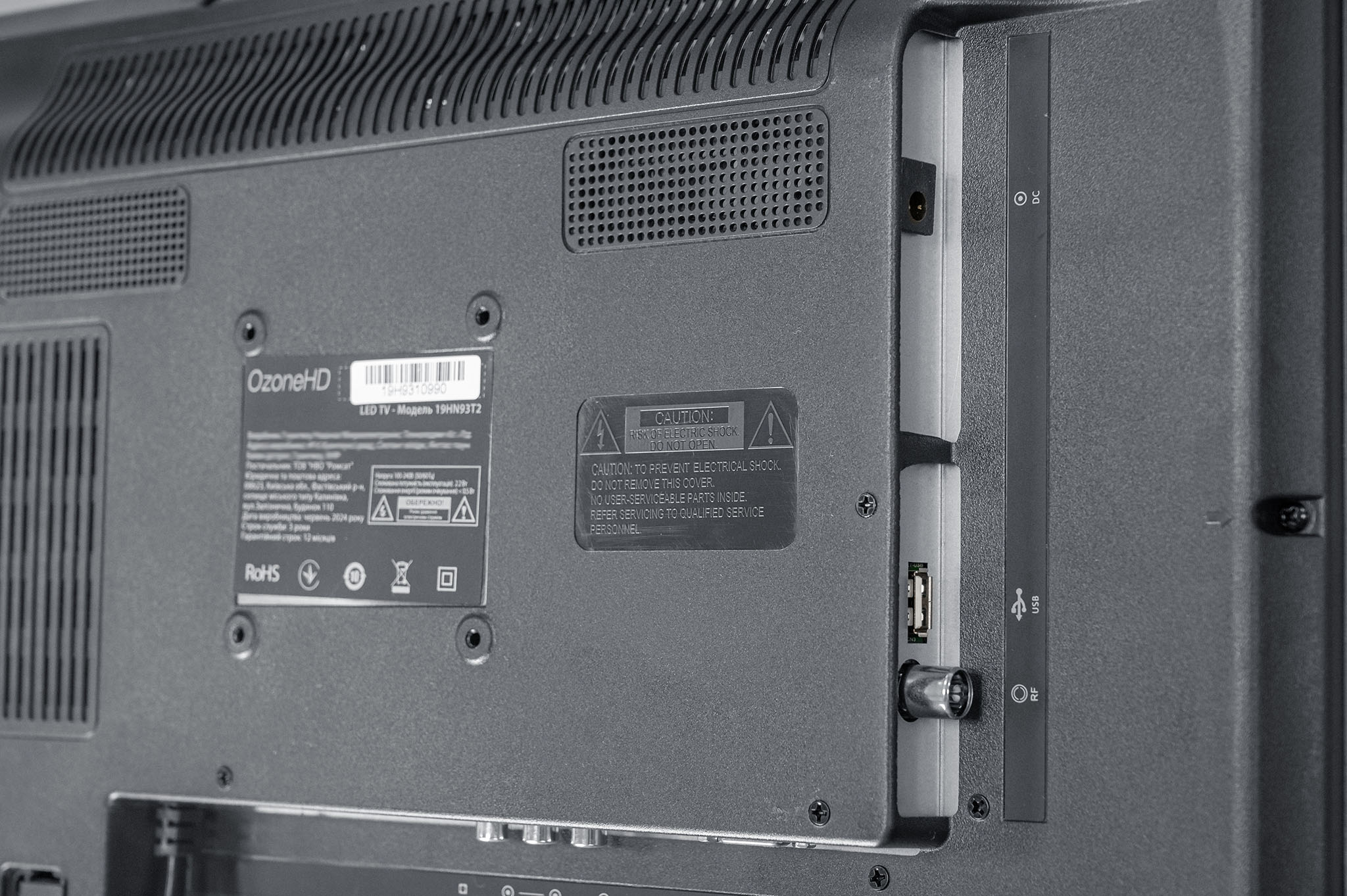OzoneHD 19HN93T2 має безліч роз'ємів для підключення зовнішніх пристроїв. Ви можете підключати до нього ігрові консолі, комп'ютери чи інші гаджети завдяки наявності HDMI і VGA входів, а також USB для відтворення мультимедійного контенту.