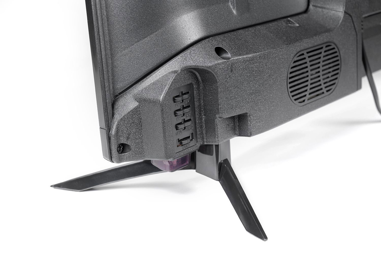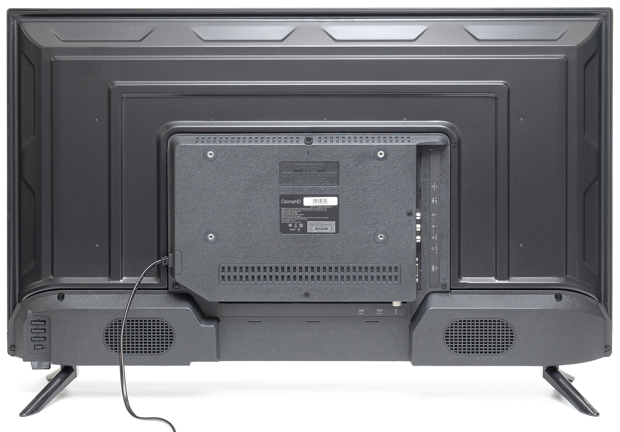 Корпус OzoneHD 32HN22T2 в тонкій елегантній рамці по периметру. Телевізор має стійкі ніжки, за допомогою яких надійно розміщується на тумбі або будь-якій горизонтальній поверхні. Для кріплення на стіну можна скористатися спеціальними кронштейнами VESA.