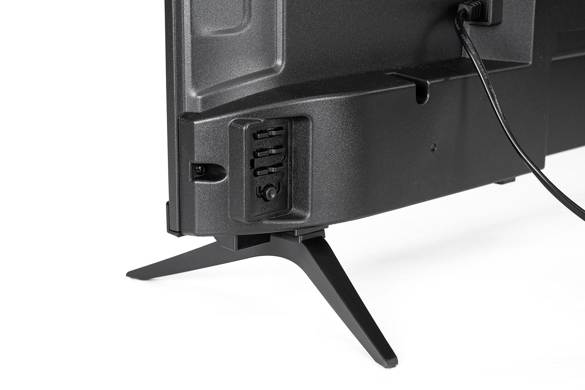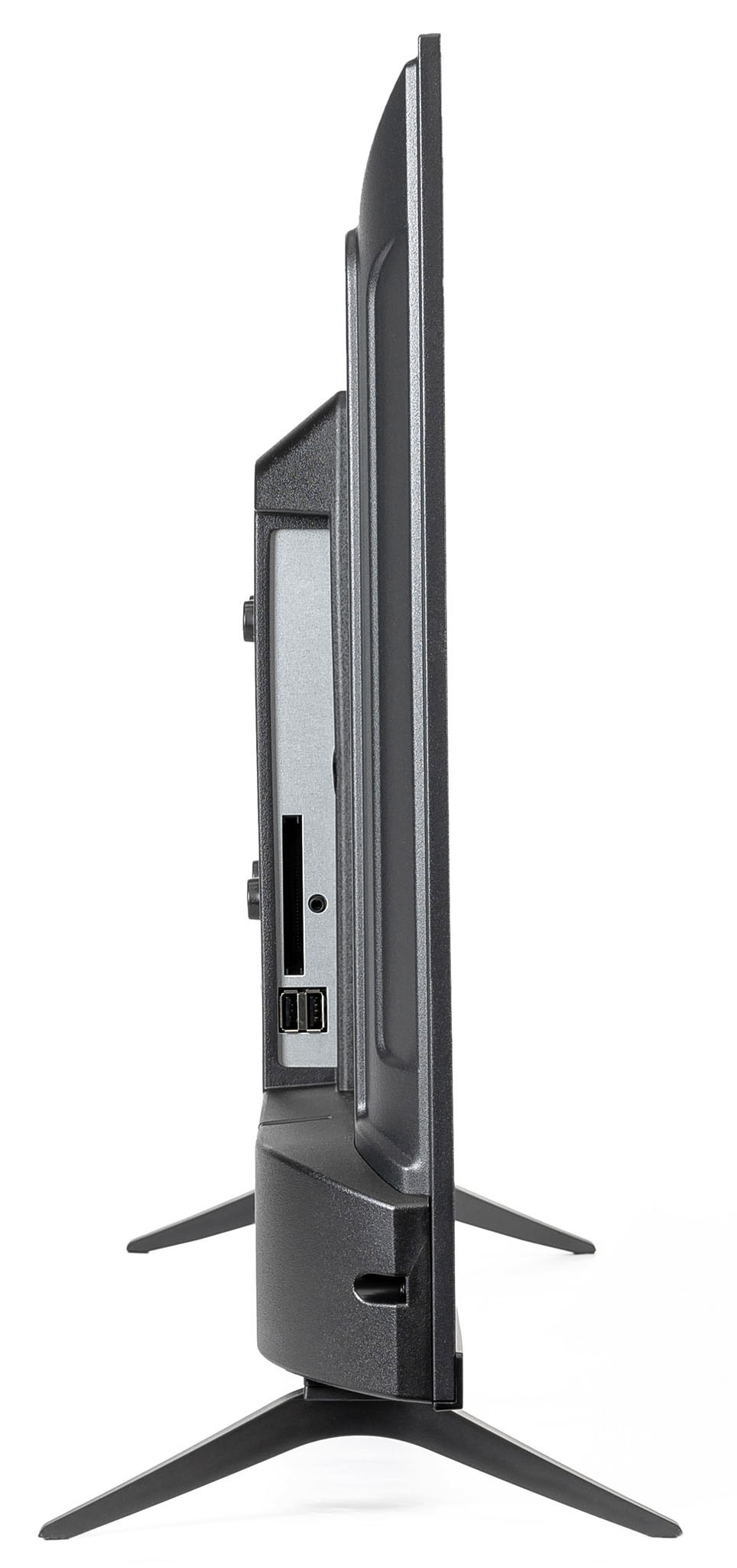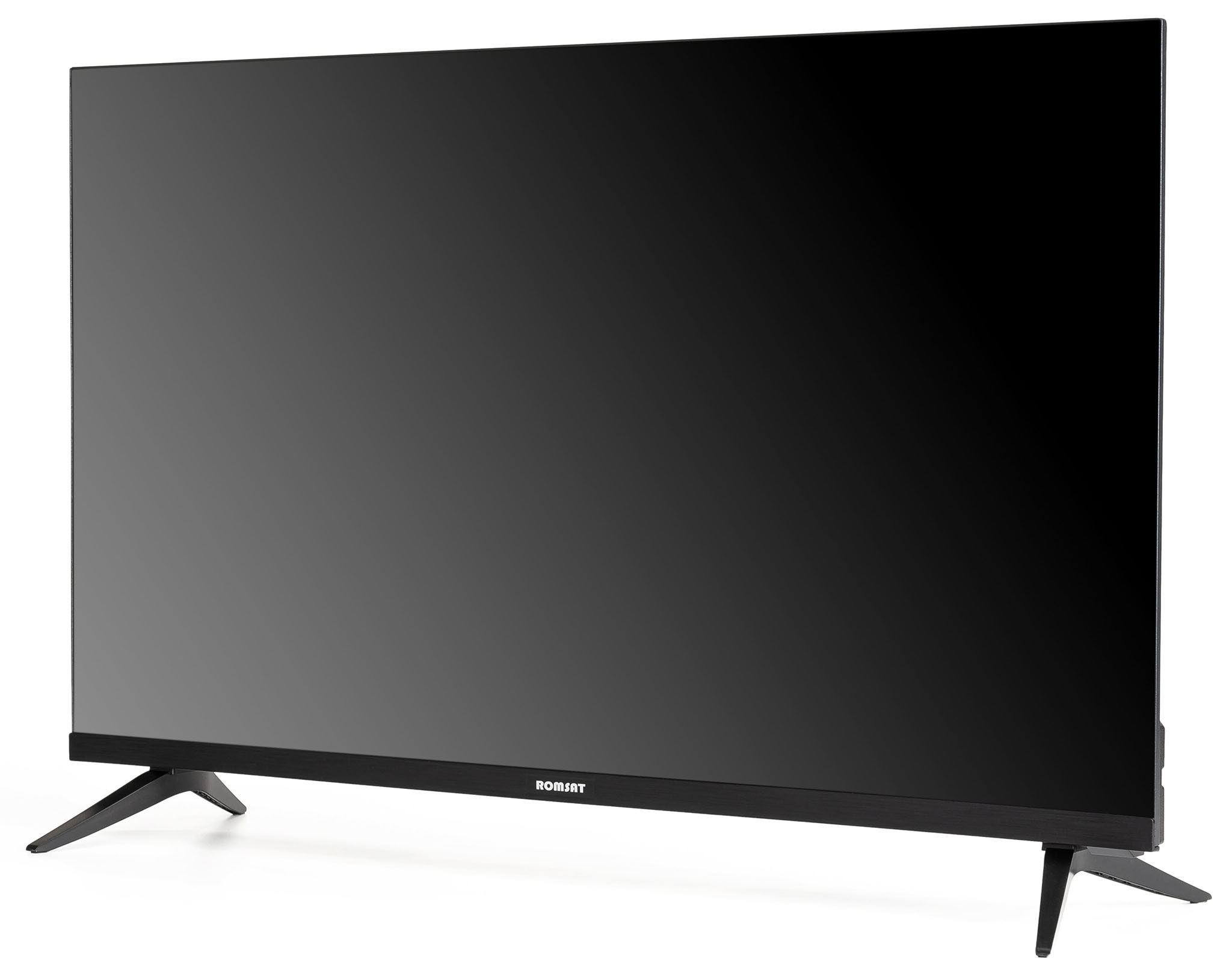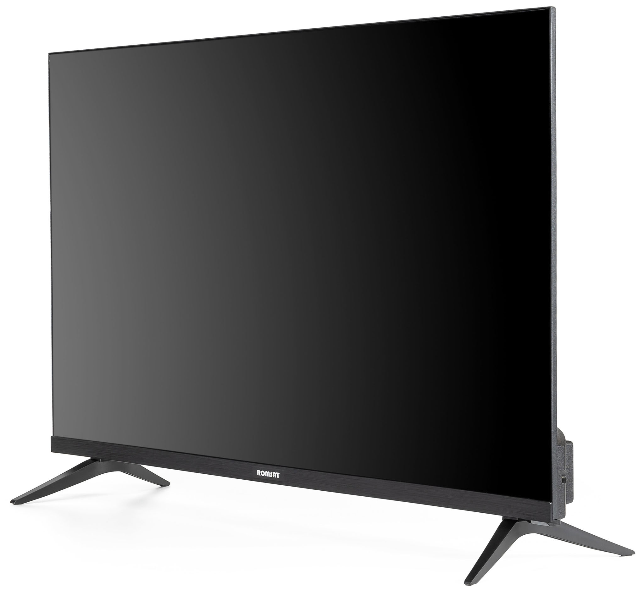 Корпус Romsat 32НSQ1220T2 виготовлений за безрамковою технологією. Така сучасна модель чудово доповнить будь-який інтер'єр. Телевізор має стійкі ніжки, за допомогою яких він надійно розміщується на тумбі. Для настінного кріплення можна користуватися спеціальними кронштейнами VESA (100х100 мм).