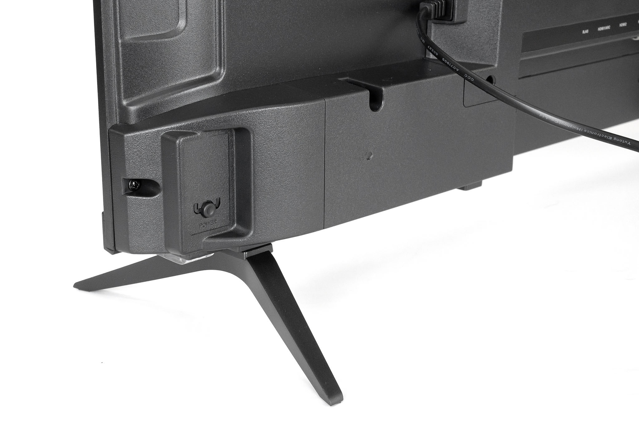 Телевізор виконаний у класичному чорному кольорі, корпус відрізняється сучасним стилем та міцністю. Стійкі ніжки забезпечують надійне розташування на горизонтальній поверхні, а підтримка стандарту VESA (100x100 мм) дозволяє легко закріпити пристрій на стіну.
