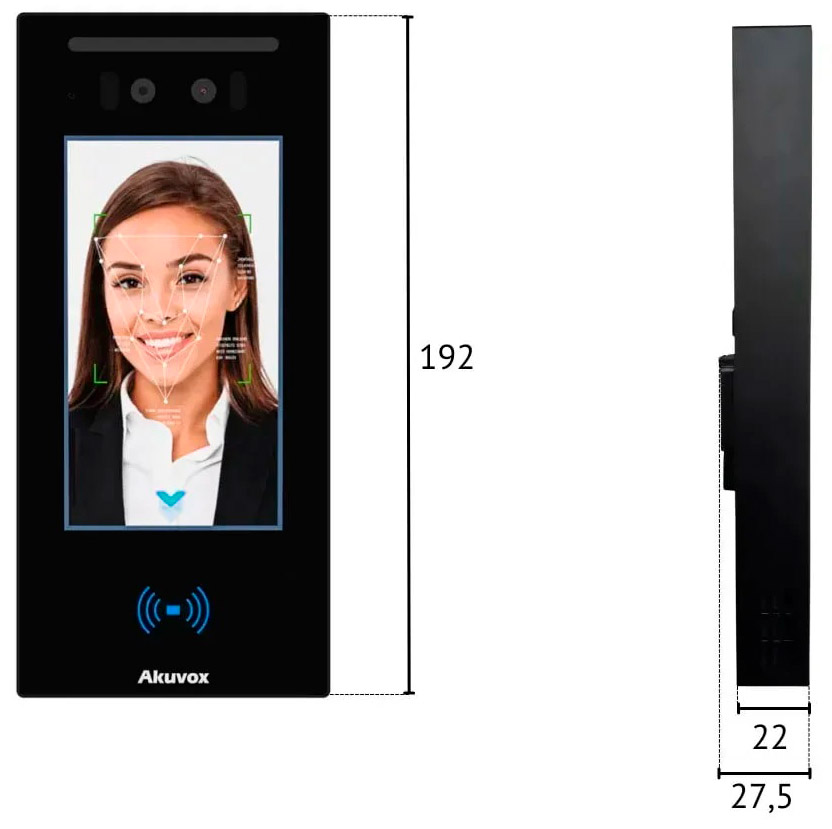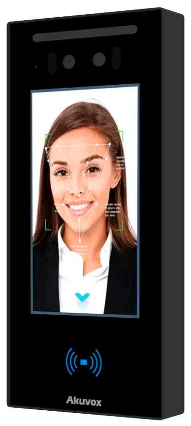 Відеотермінал Akuvox A05C - інтелектуальний IP-пристрій контролю доступу з функцією розпізнавання обличчя у видимому світлі, призначений для використання в автономних і мережевих системах безпеки. Пристрій поєднує біометричну ідентифікацію з компактним форм-фактором і підтримує централізоване керування через веб-інтерфейс.