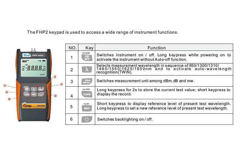 Вимірювачі оптичної потужності FHP2 спільно з стабілізованими джерелами оптичного випромінювання, можуть використовуватися для: ідентифікації оптичного волокна, вимірювання оптичного згасання, перевірки безперервності і оцінки якості передачі волоконно-оптичної лінії зв'язку.