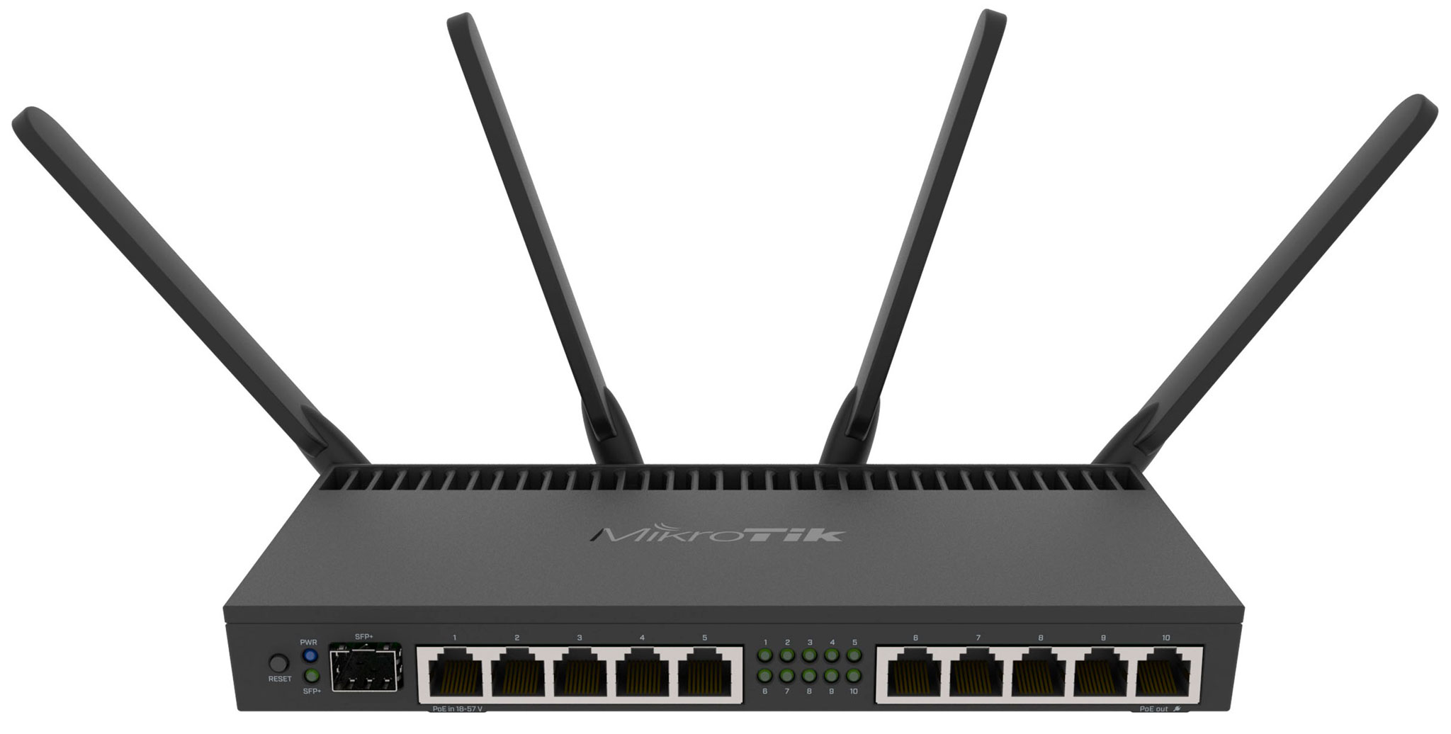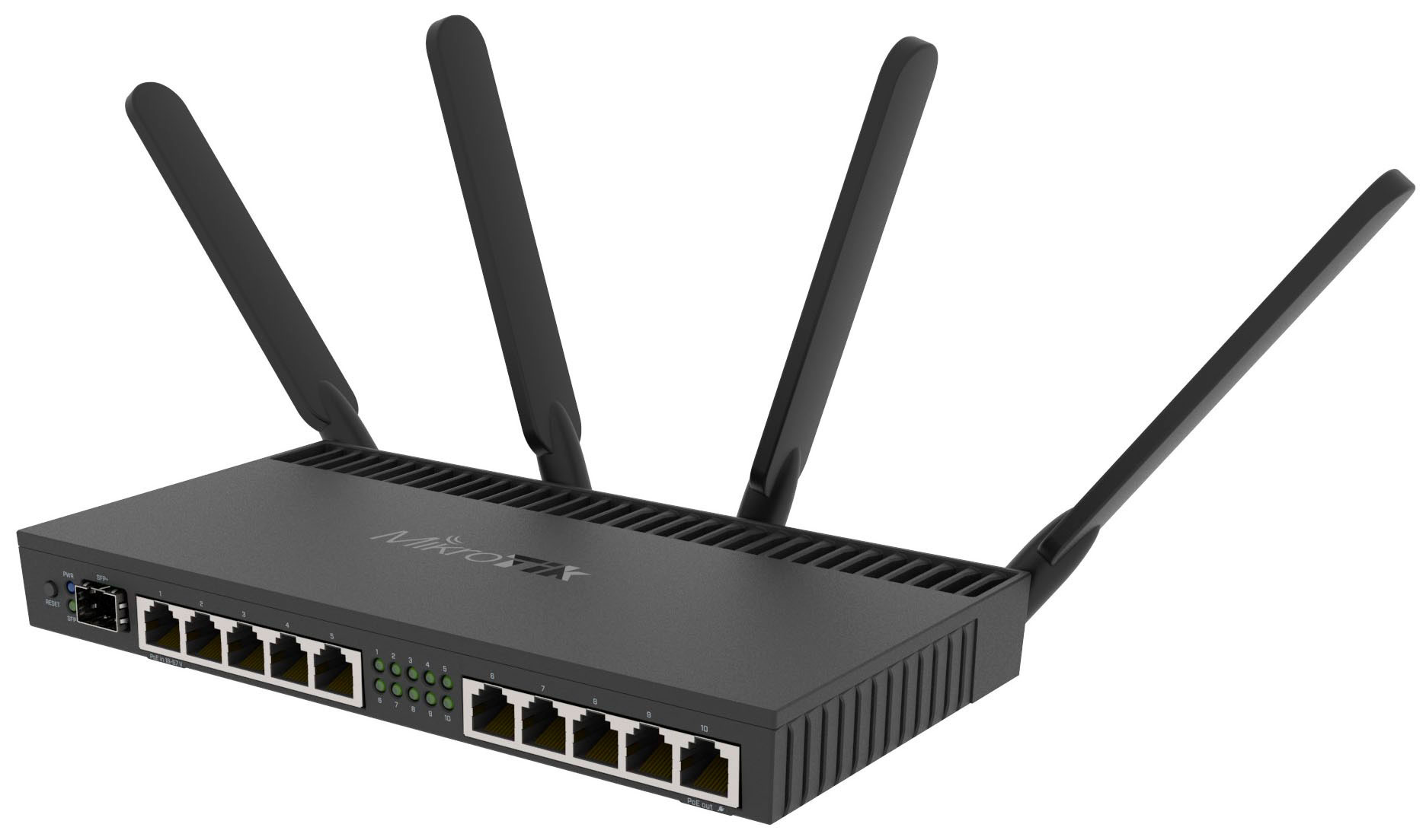 RB4011iGS+5HacQ2HnD-IN - дводіапазонний 2.4GHz/5GHz 4x4 MIMO 802.11a/b/g/n/ac Wi-Fi роутер зі швидкістю передачі даних до 1733 Мbps в частотному діапазоні 5 GHz. Для застарілих пристроїв в слоті miniPCI-e встановлена бездротова плата з робочою частотою 2.4 GHz.