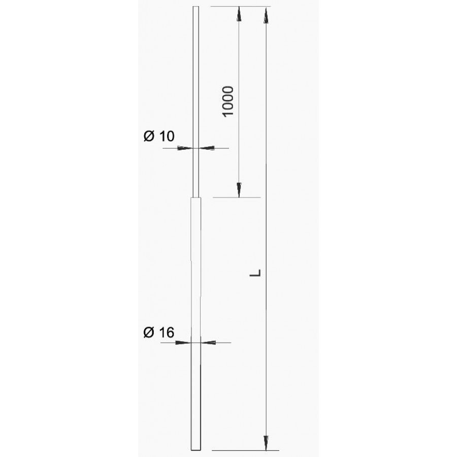 Останній метр звужений з d 16 мм до d 10 мм. Підходить для зон з високою вітрової навантаженням. Виготовлений з алюмінію.