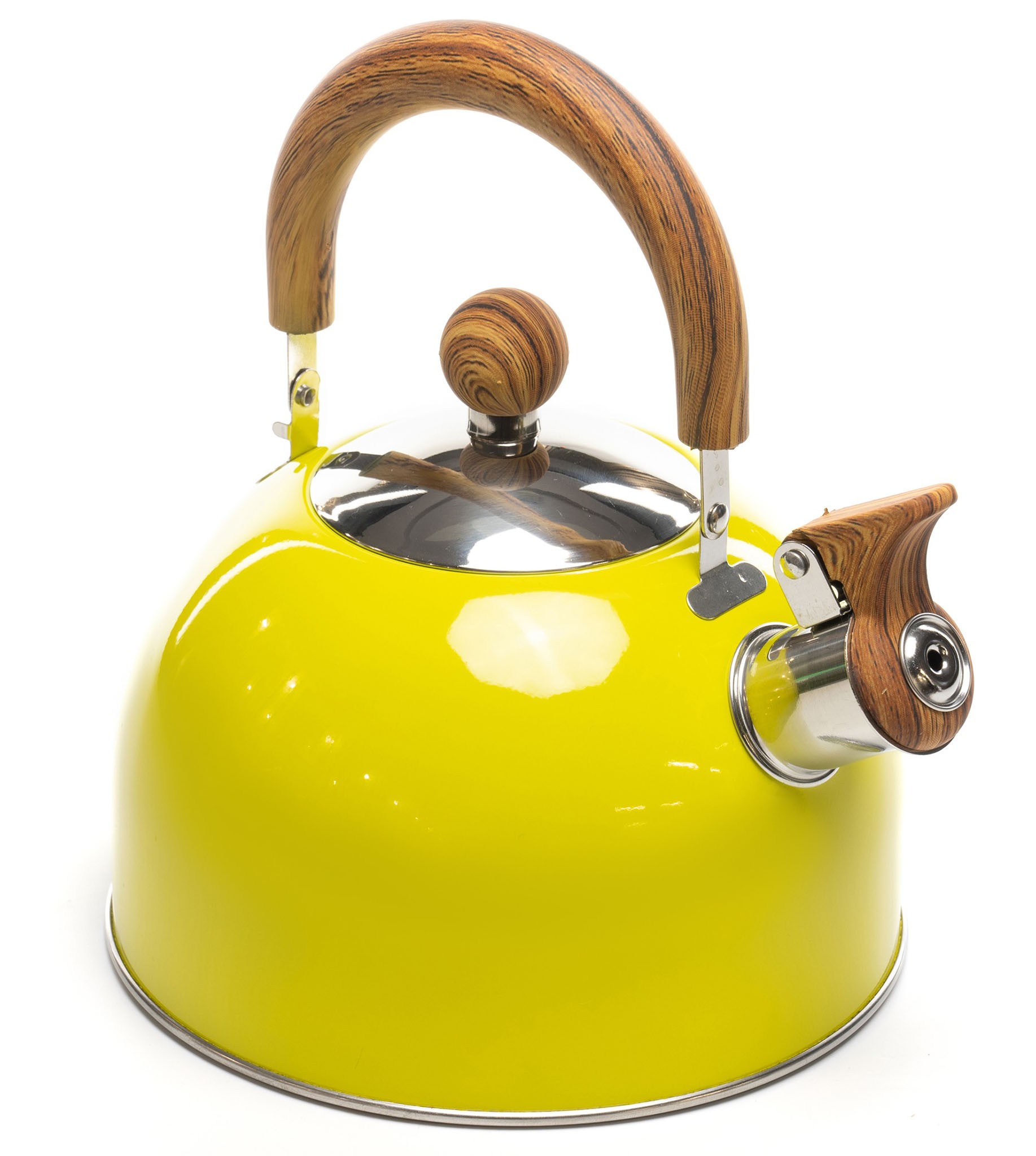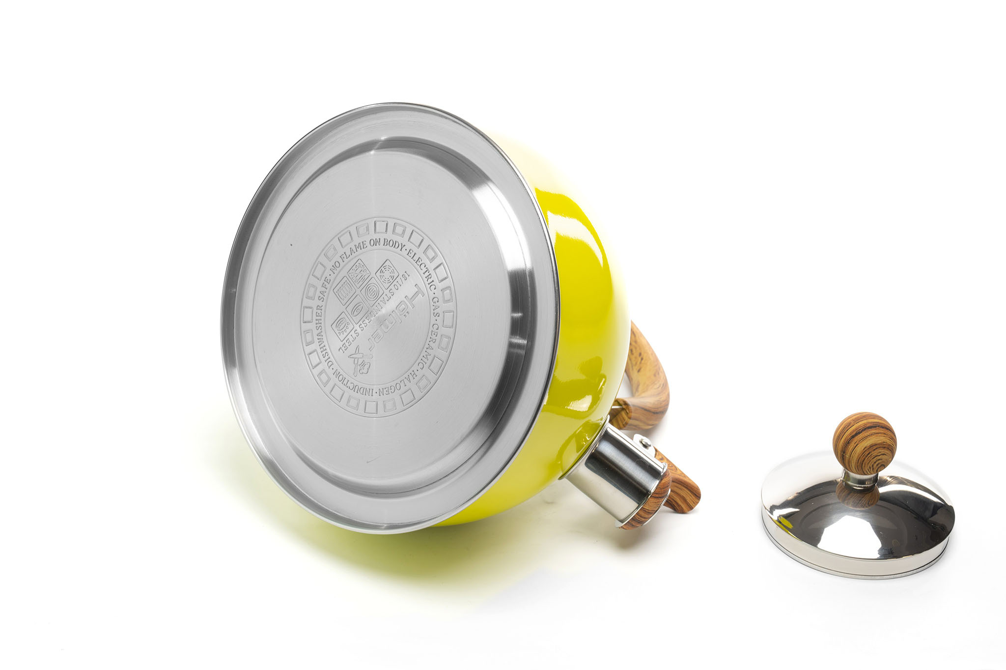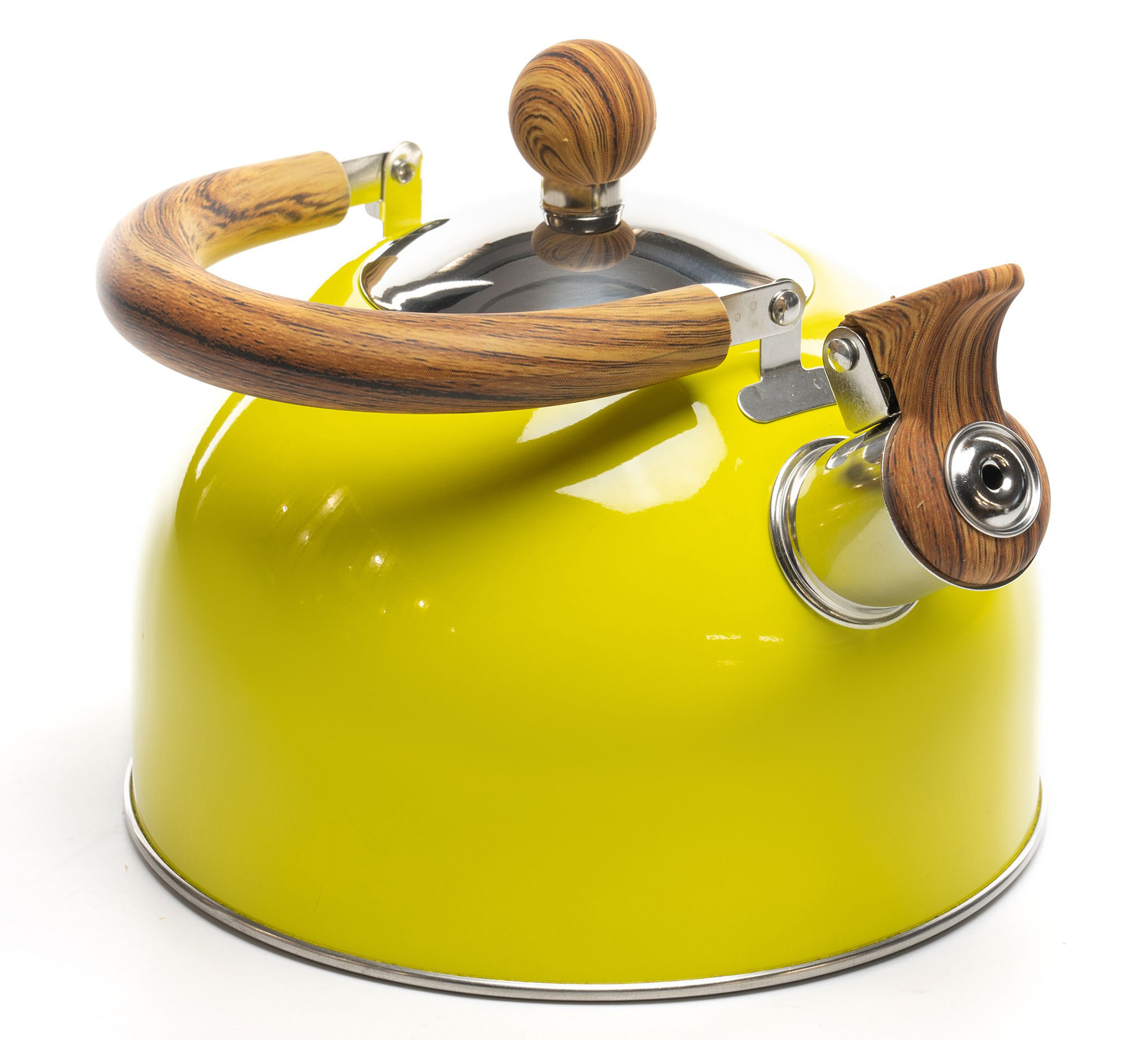 Для безпечного та зручного користування, чайник отримав термостійкі бакелітові ручки та кнопкою відкриття носика. Корпус свистка також виконано з бакеліту, який захистить від випадкових опіків під час використання.