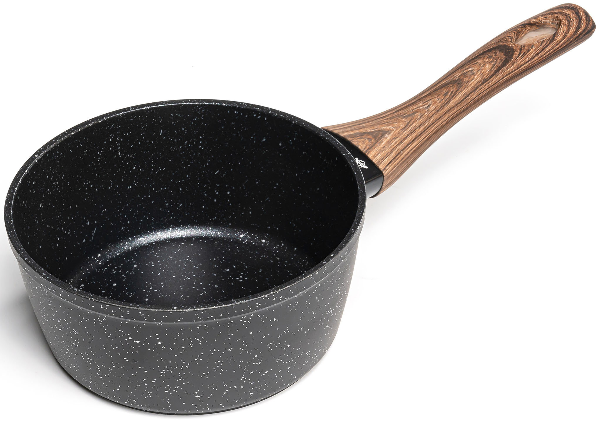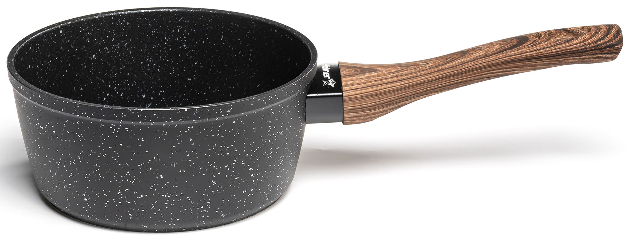 Колір ковша - чорний, що надає йому стильний та сучасний вигляд. Ручка ковша виконана з бакеліту з покриттям SOFT-Touch, що забезпечує комфортний захват та захист від нагрівання. Крім того, ручка має кольорове покриття, що нагадує текстуру дерева, додаючи природну та затишну атмосферу до вашої кухні.