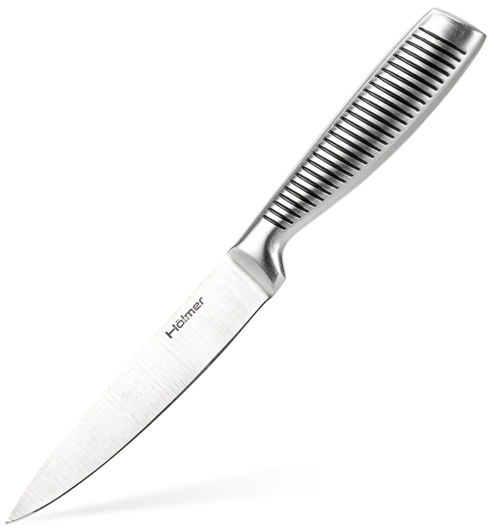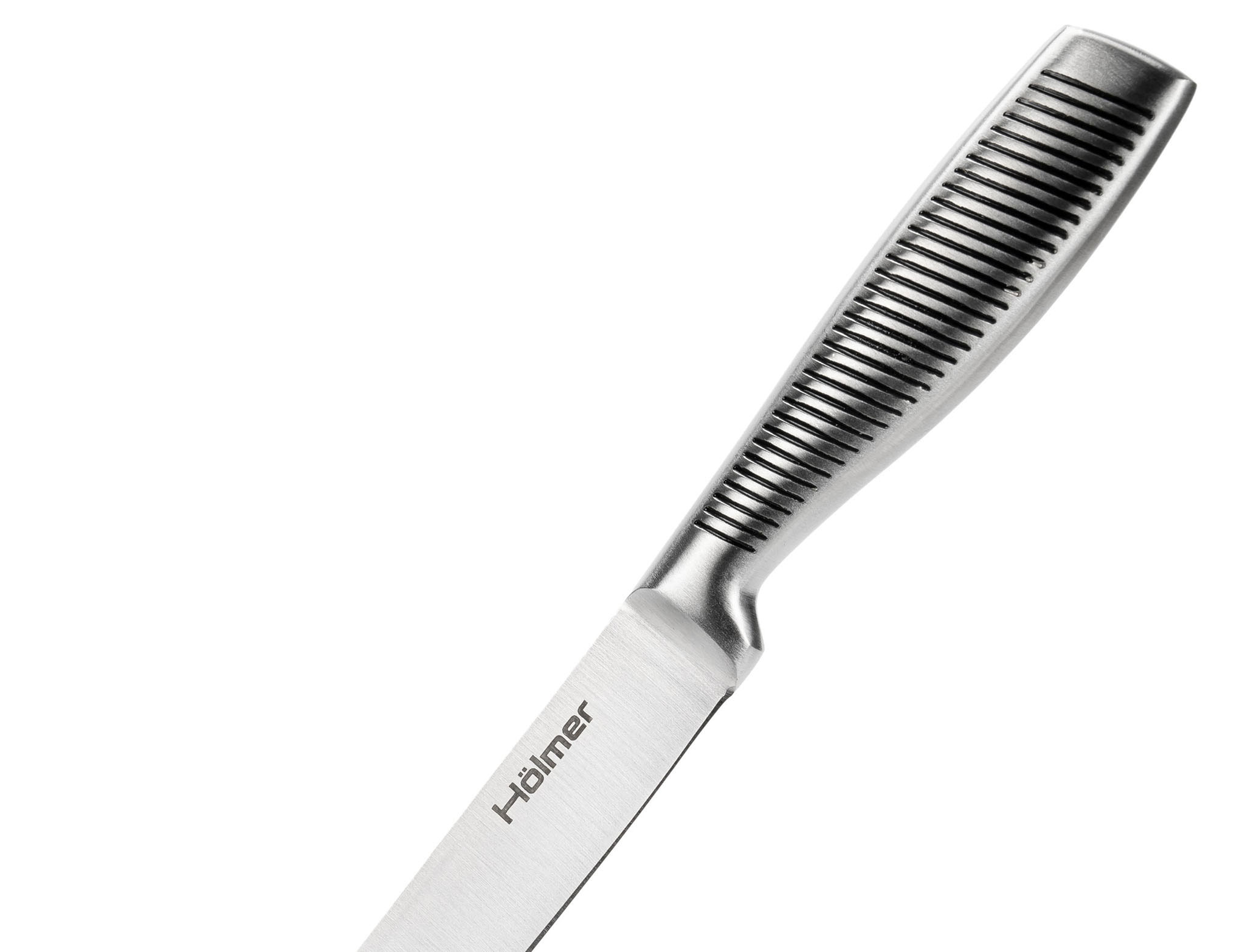 Ножі з набору Hölmer Stone мають сучасний дизайн, анатомічну ручку, що забезпечує комфорт і безпеку під час роботи. Набір ножів Hölmer Stone виготовлений з високоякісної сталі. Ножі Stone мають ідеальний кут заточування і не вимагають додаткових заточок протягом довгого часу. Підходять для інтенсивного щоденного використання, зберігаючи ідеальний зовнішній вигляд протягом усього терміну експлуатації.
