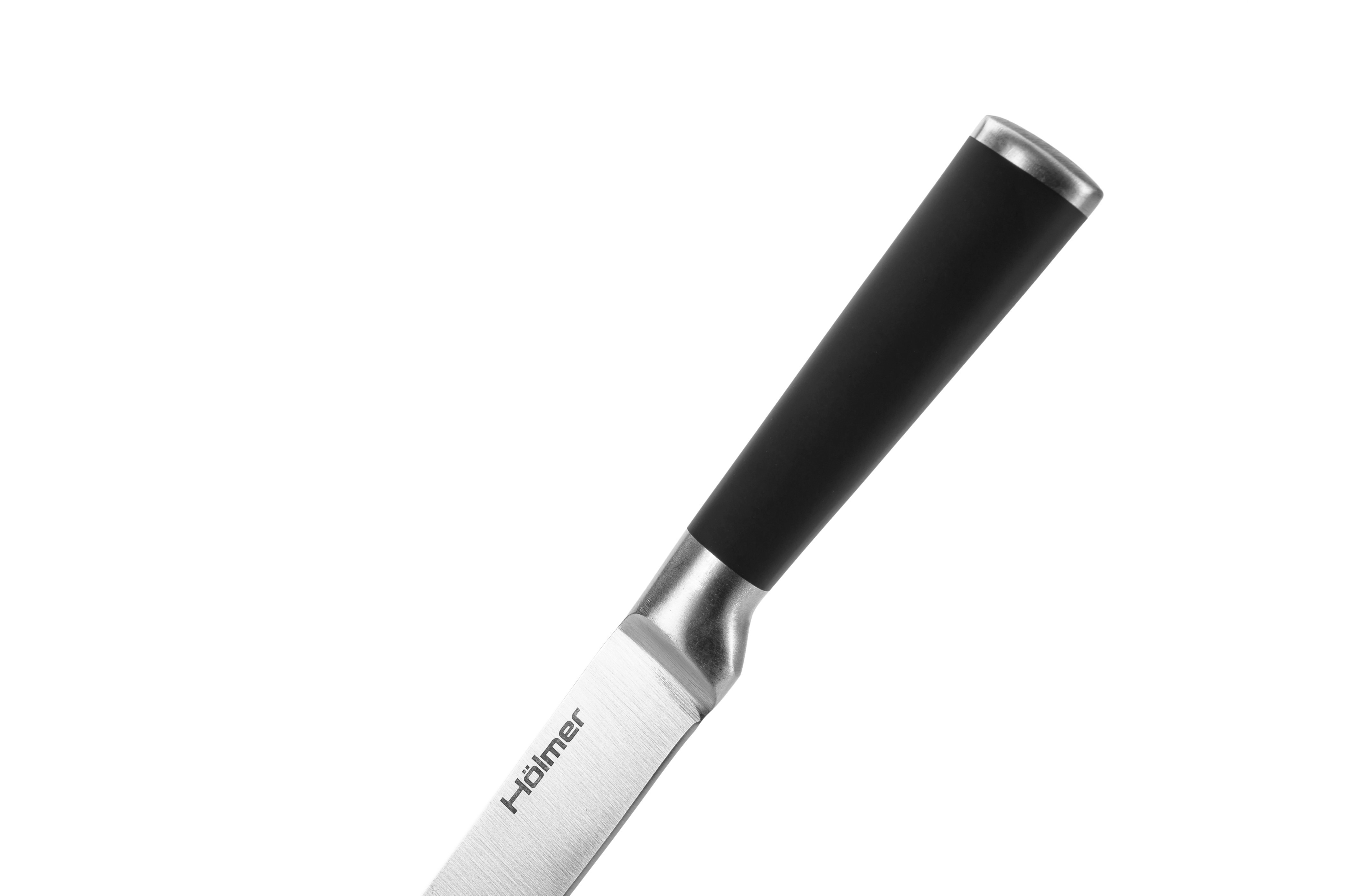 Ножі з набору Hölmer Fixity мають сучасний дизайн, анатомічну ручку, що забезпечує комфорт і безпеку під час роботи. Набір ножів Hölmer Fixity виготовлений з високоякісної сталі. Ножі Fixity мають ідеальний кут заточування і не вимагають додаткових заточок протягом довгого часу. Підходять для інтенсивного щоденного використання, зберігаючи ідеальний зовнішній вигляд протягом усього терміну експлуатації.