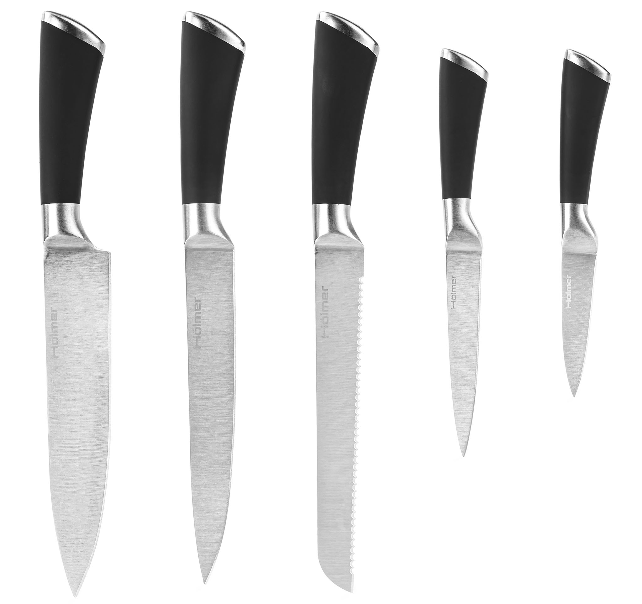 Ножі з набору Hölmer Stylish мають сучасний дизайн, анатомічну ручку, що забезпечує комфорт і безпеку під час роботи. Набір ножів Hölmer Stylish виготовлений з високоякісної сталі. Ножі Stylish мають ідеальний кут заточування і не вимагають додаткових заточок протягом довгого часу. Підходять для інтенсивного щоденного використання, зберігаючи ідеальний зовнішній вигляд протягом усього терміну експлуатації.