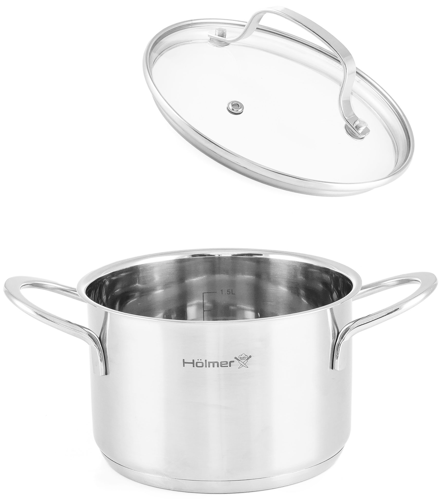 Hölmer CS-4451-SS Elegance включає в себе каструлі об'ємом 2 л та 3,8 л, що робить їх ідеальним вибором для будь-якого виду приготування.