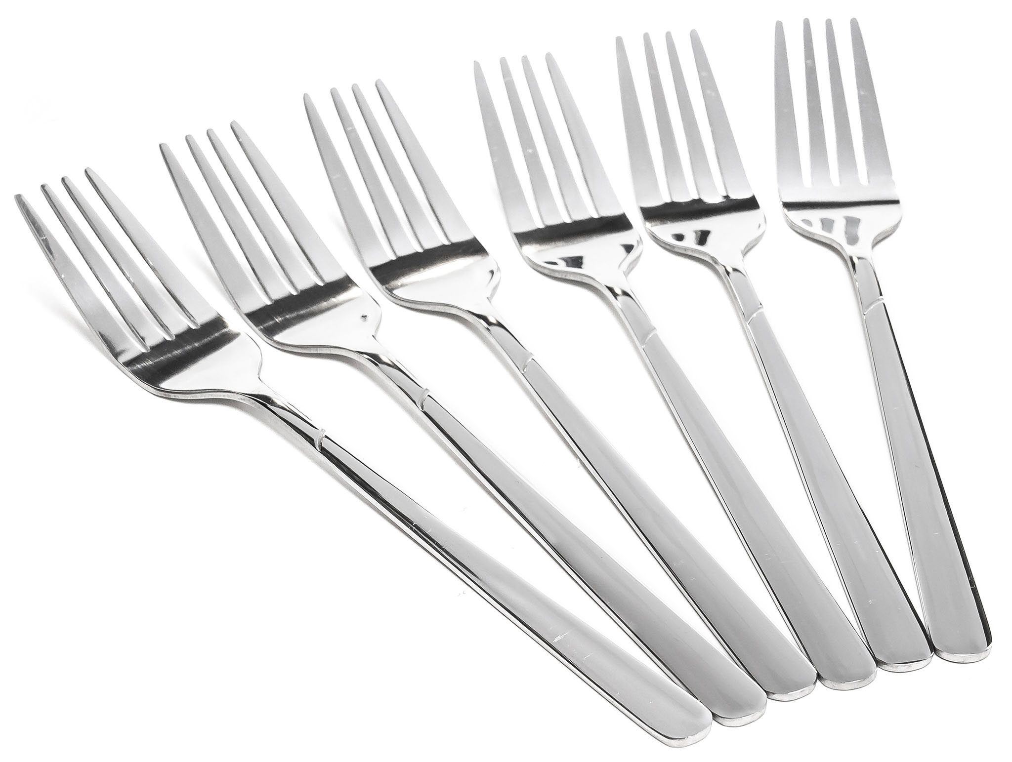 Виделки мають дзеркальне полірування, яке надає їм елегантного вигляду, роблячи їх ідеальними для будь-якої нагоди – від повсякденних обідів до урочистих заходів. Зручні ручки, виконані з нержавіючої сталі, забезпечують комфорт і надійність під час використання.