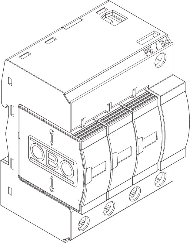 Комбінований розрядник, розрядник блискавки та розрядник перенапруг типу 1+2 відповідно до DIN EN 61643-11.