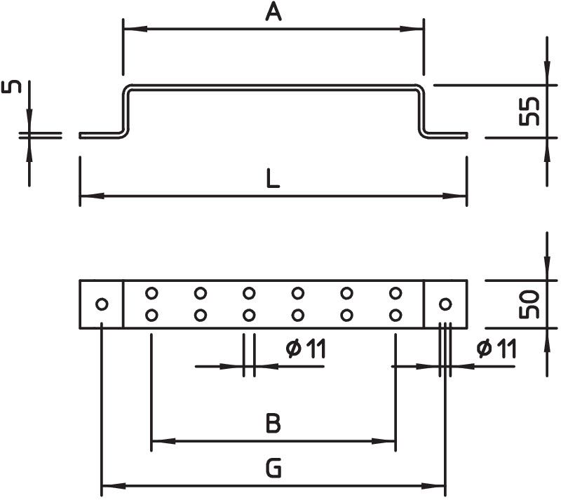 Шина для з'єднання потенціалу із системою заземлення. Матеріал: сталь.