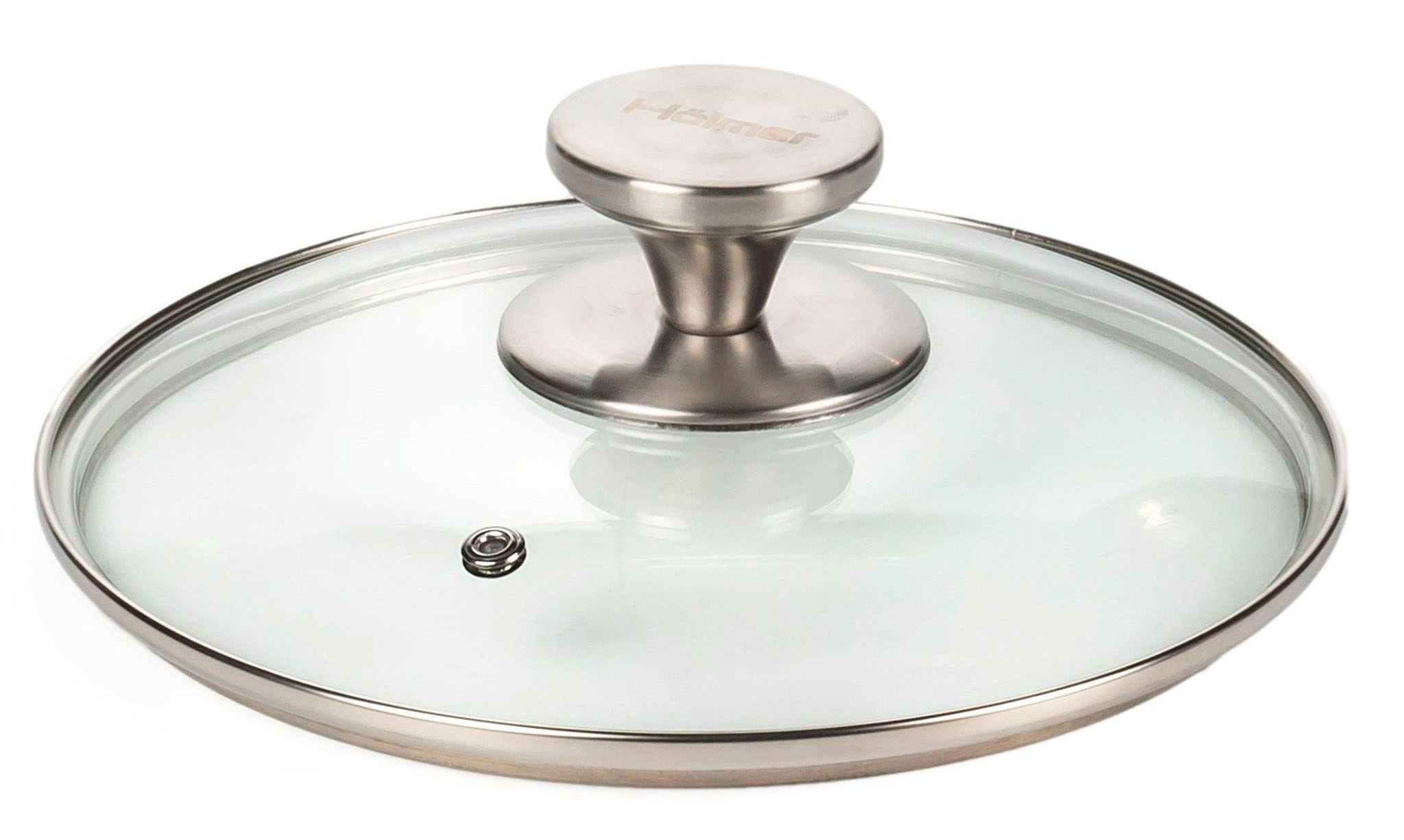 Кришка з термостійкого скла, з ободом із нержавіючої сталі й отвором для виходу пари. Завдяки тому, що кришка прозора легко спостерігати за приготуванням їжі, не знімаючи її зі сковороди.