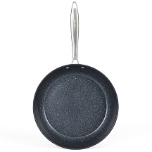 Сковороди серії Elegance виготовлені із кованого алюмінію, товщиною 3 мм, ця сковорідка нагрівається швидко та рівномірно. Що значно прискорює процес приготування, а також перешкоджає пригоранню і нерівномірному просмажуванню продуктів.