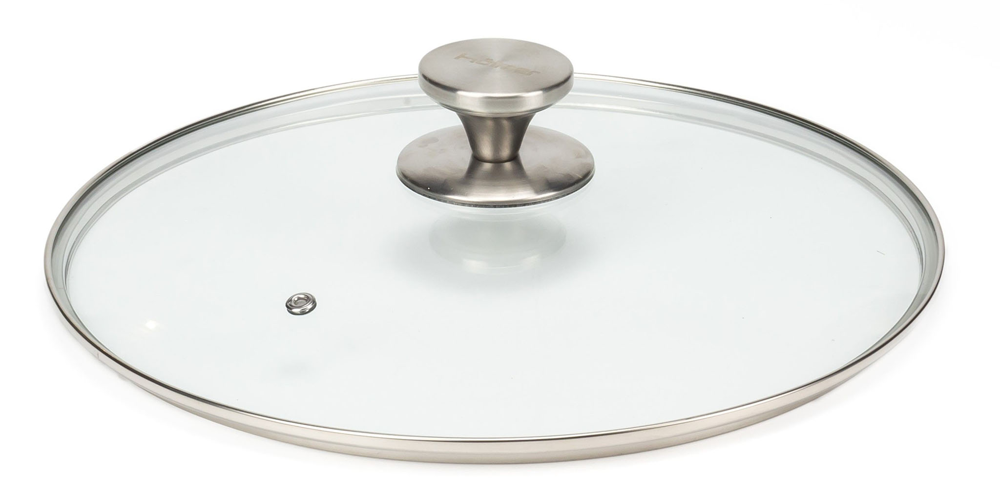Кришка з термостійкого скла, з ободом із нержавіючої сталі й отвором для виходу пари. Завдяки тому, що кришка прозора легко спостерігати за приготуванням їжі, не знімаючи її зі сковороди.