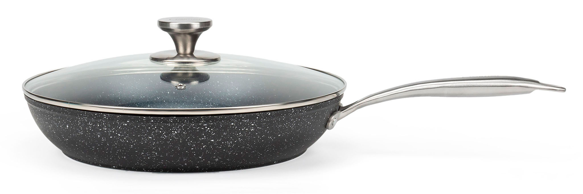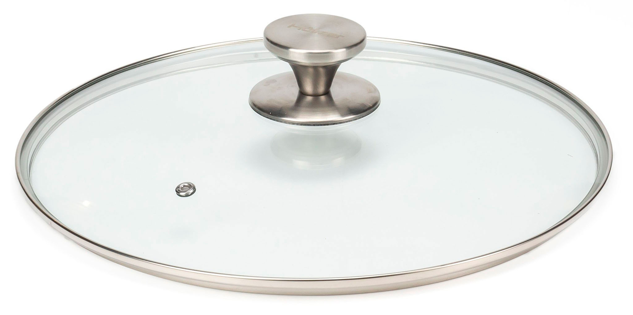 Кришка з термостійкого скла, з ободом із нержавіючої сталі й отвором для виходу пари. Завдяки тому, що кришка прозора легко спостерігати за приготуванням їжі, не знімаючи її зі сковороди.