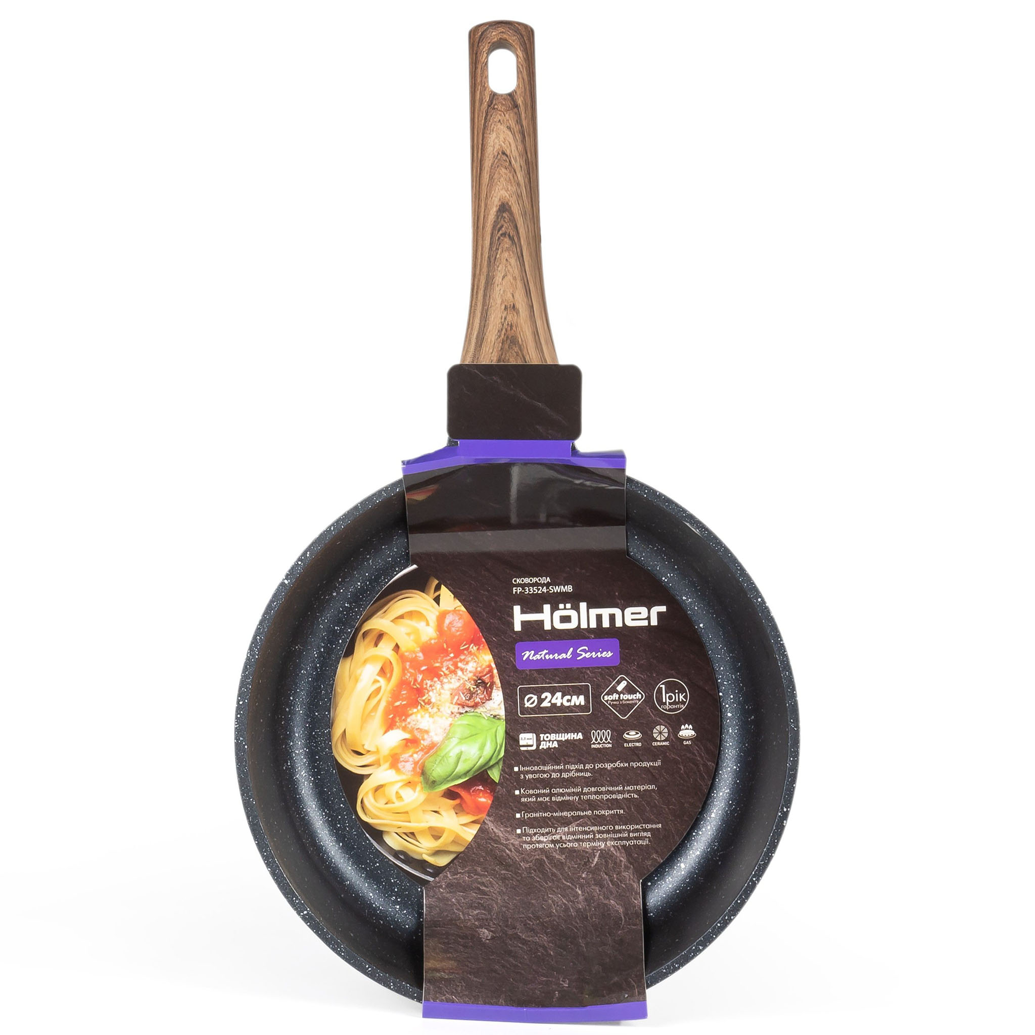Сковороди Hölmer серії Nature - це посуд, який має стильний дизайн, антипригарне покриття PFULTON. Тришарове мармурове покриття має чудові експлуатаційні характеристики. Використання спеціального крапельно-дисперсного нанесення фінішних шарів створює унікальне по структурі тришарове покриття з ефектом мармуру.