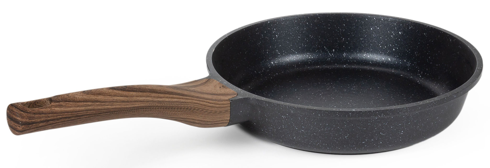 Зручність використання даної сковороди досягається завдяки ергономічній ручці з бакеліту. Додаткове покриття soft-touch, крім тактильного задоволення, захищає руки від опіків і дозволяє не вислизає навіть з вологих долонь. А ручка яка стилізована під дерево буде гарно виглядати у будь-якій кухні.