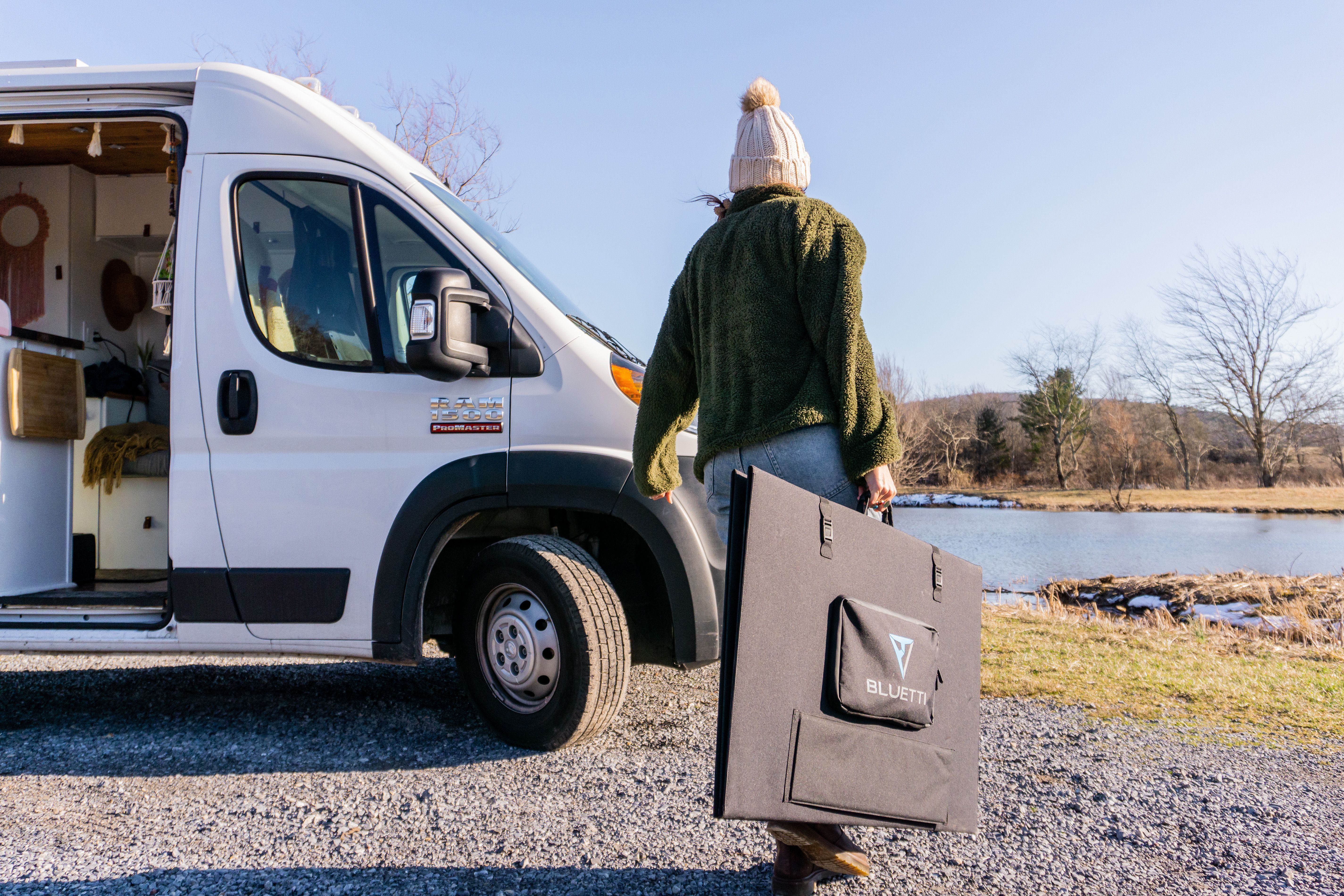 Сонячна панель BLUETTI на 350 Вт у складеному стані займає 940*585*47 мм за маси 12,5 кг. Її зручно переносити, встановлювати та підключати до зарядних станцій BLUETTI. Панель виготовлена із застосуванням інноваційної технології ламінування з довговічного матеріалу ETFE в зовнішньому шарі.