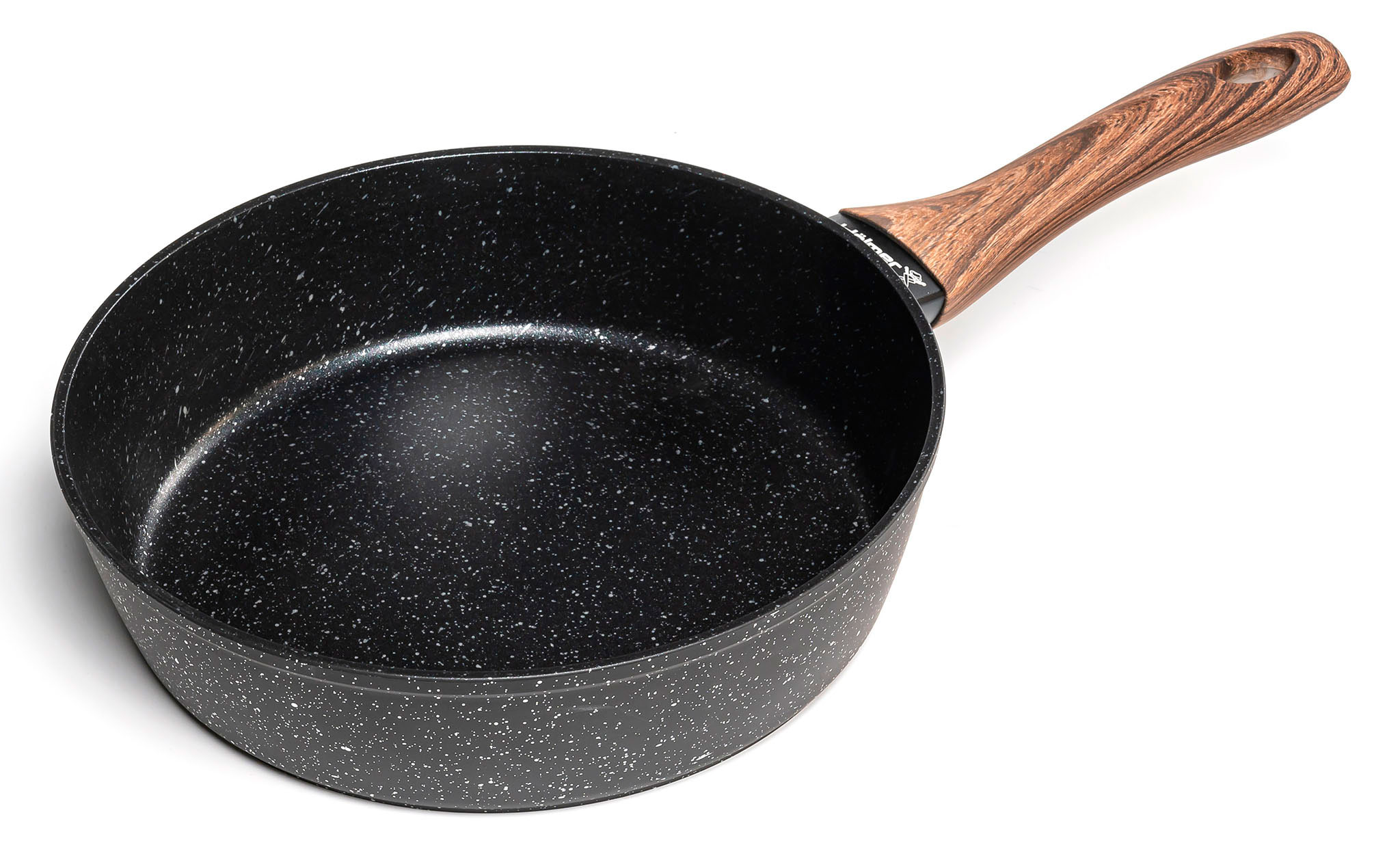 Сотейник виготовлений з кованого алюмінію, що забезпечує його міцність та довговічність. Товщина стінок становить 2,6 мм, а дна - 2,8 мм, що забезпечує рівномірний розподіл тепла та ефективне проведення тепла під час готування.