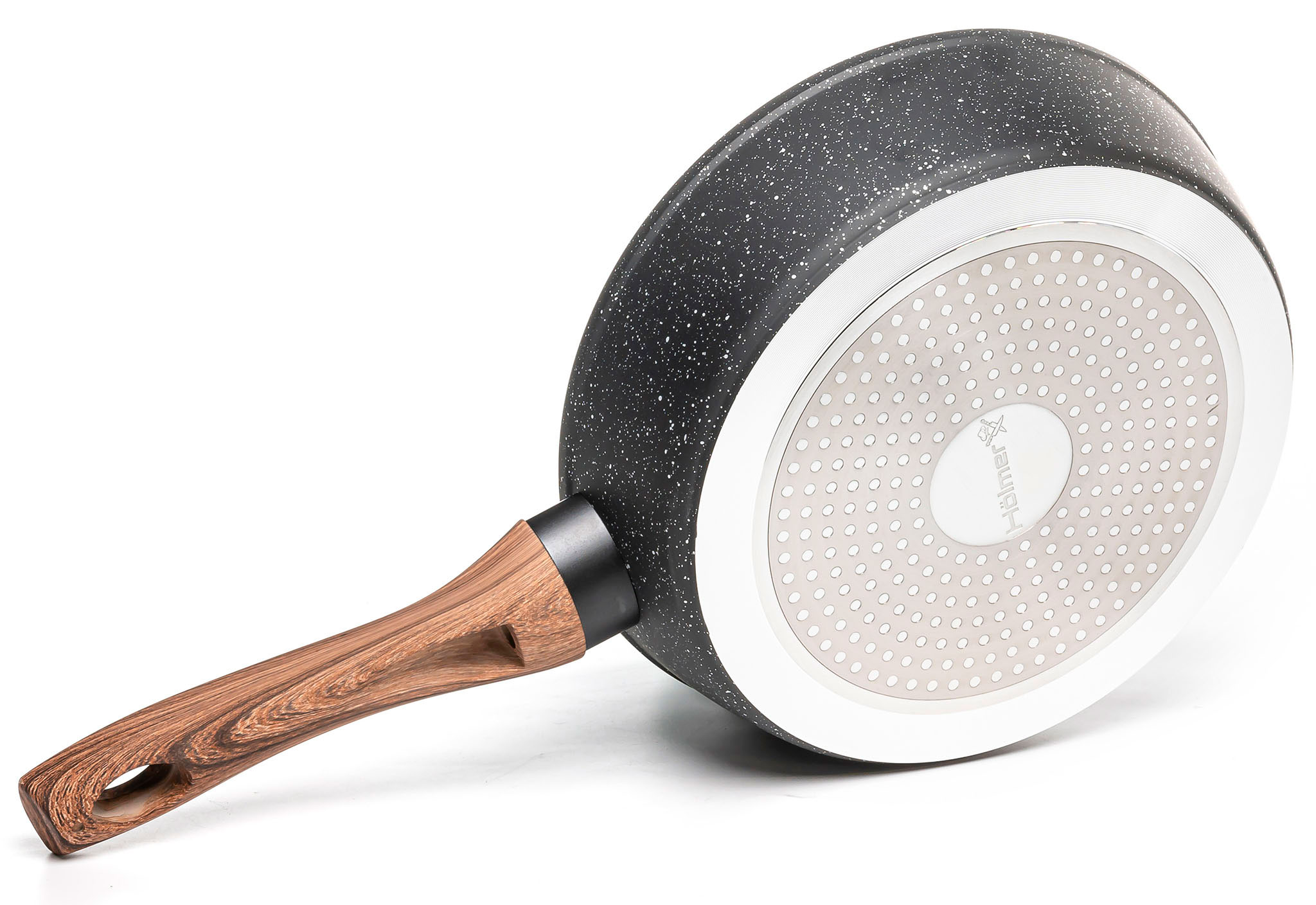 Усередині сотейника розташоване мармурове 3-х шарове покриття, яке запобігає пригоранню та забезпечує рівномірний розподіл тепла. Це допомагає зберегти смакові якості продуктів та полегшує процес чищення після готування.