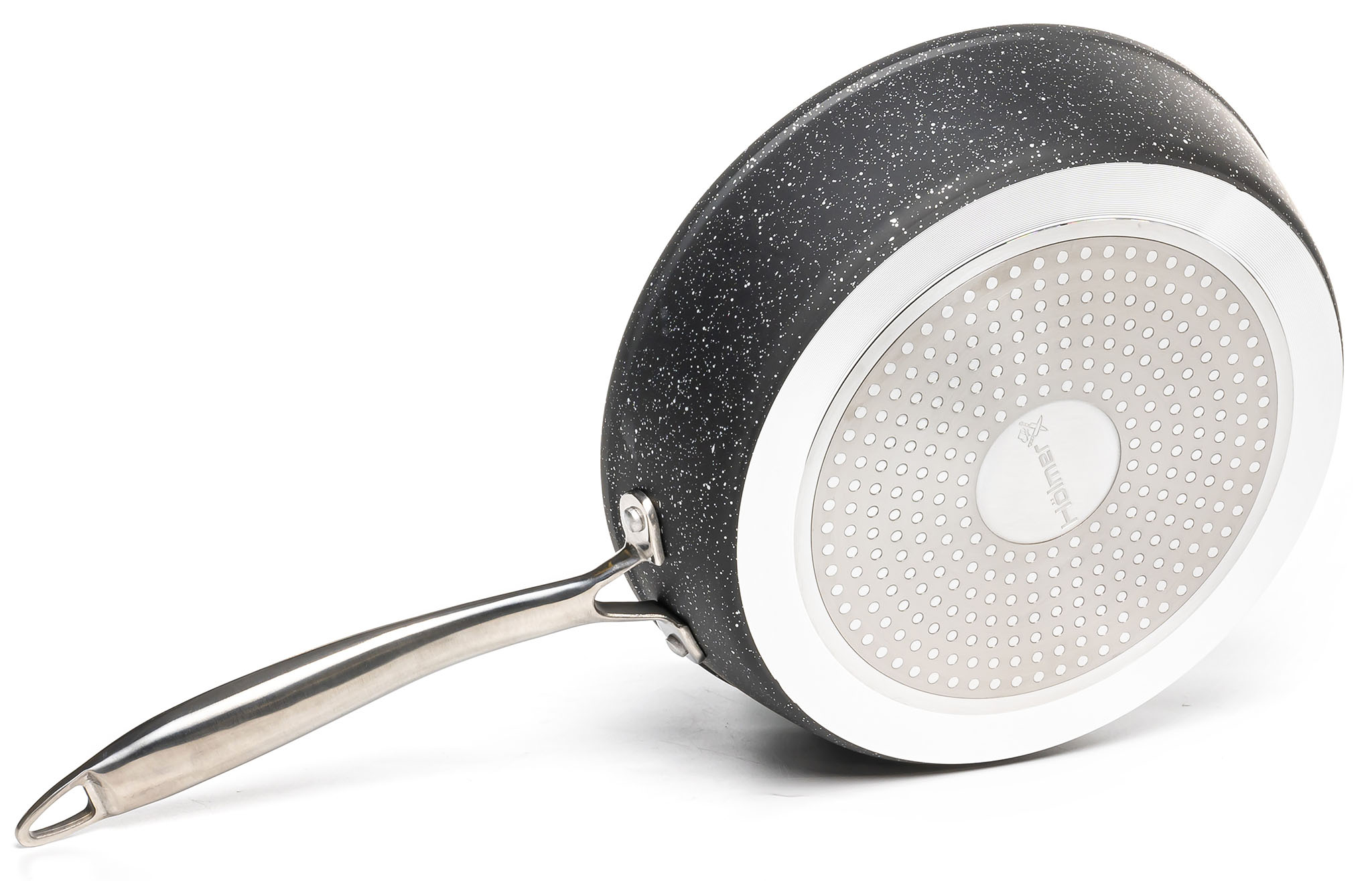 Усередині сотейника знаходиться мармурове 3-х шарове покриття, яке запобігає пригоранню та забезпечує рівномірний розподіл тепла. Це допомагає зберегти поживні речовини та смакові властивості продуктів, а також полегшує процес прибирання після готування.